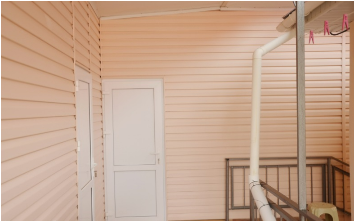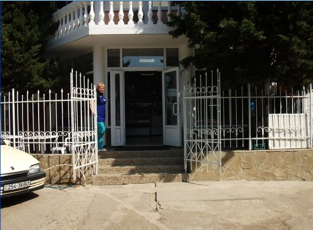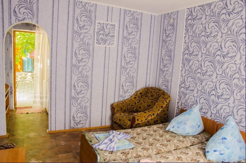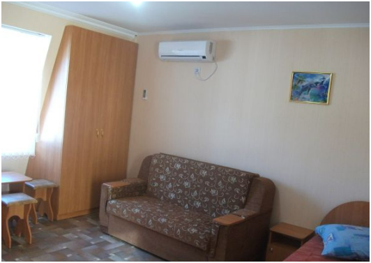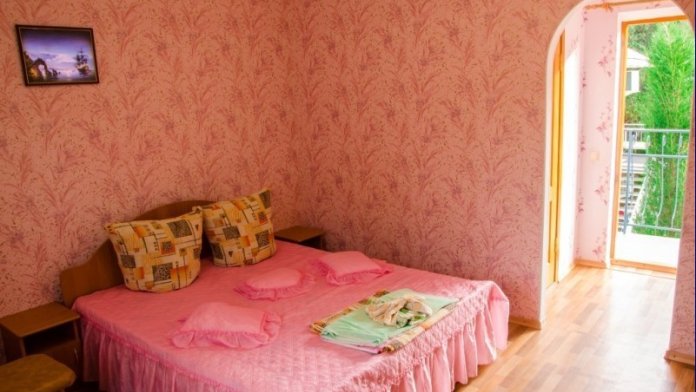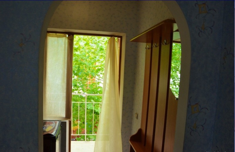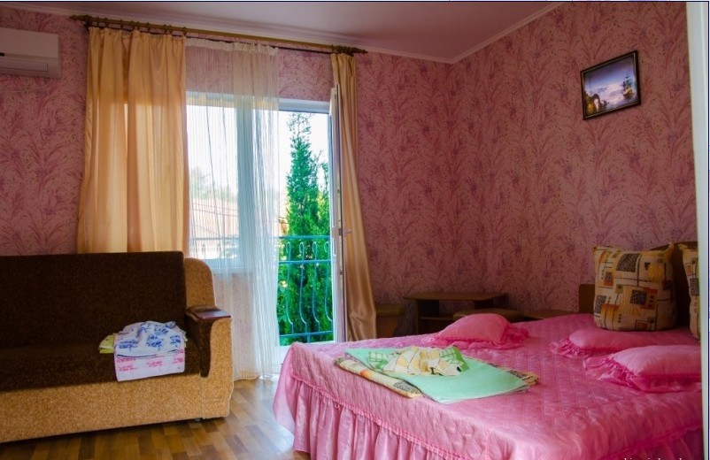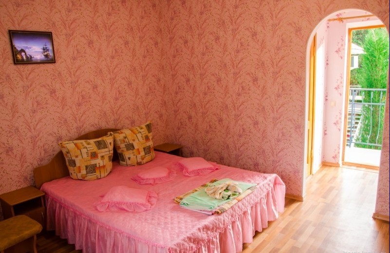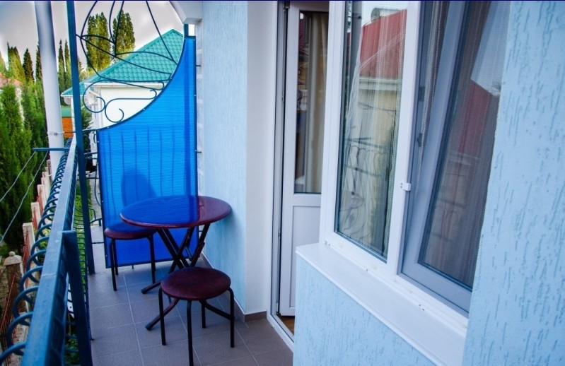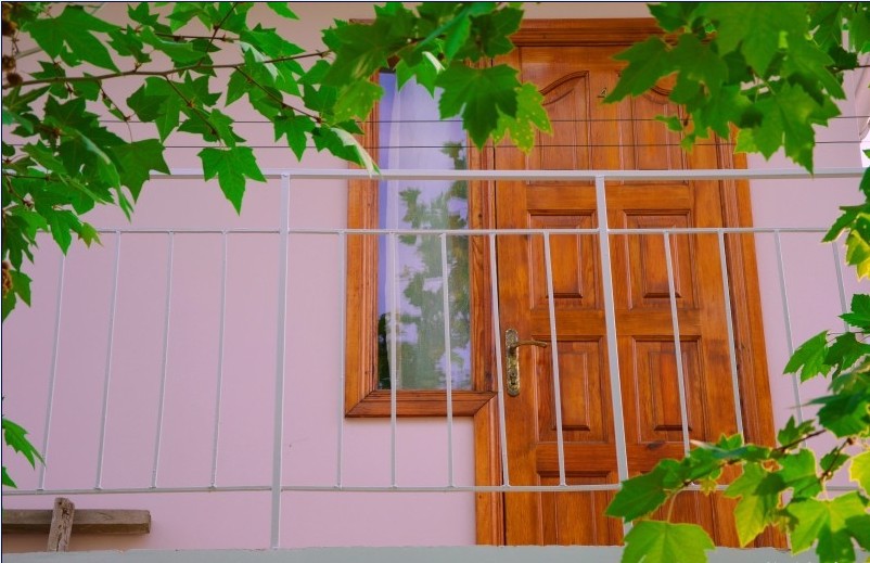 В пансионате имеется собственный дворик со столиками в тени платанов и лужайкой. Территория засажена кипарисами, пальмами, кустами лавровишни, розмарина и туи, а так же розами и различными цветами.