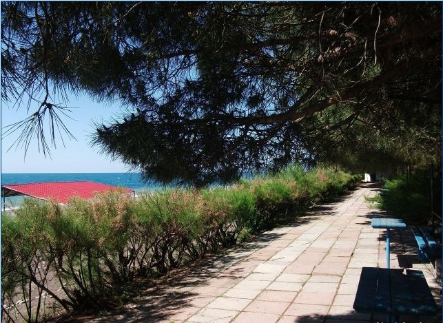 Вдоль пляжа протянулась аллея из итальянской сосны , на ветвях которой растут огромные шишки, похожие на кедровые. На аллее имеются столики, можно любоваться морем, сидя в тени аллеи.