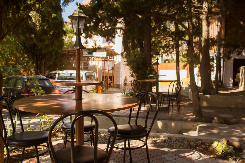 Есть кухни во многих номерах люкс, а также общая кухня. Кухни оборудованы всем необходимым. Шашлык, плов Вы можете приготовить на мангальной площадке в парке под кипарисами. На набережной в 50-200 метрах расположено большое количество ресторанов, кафе, клубов.