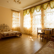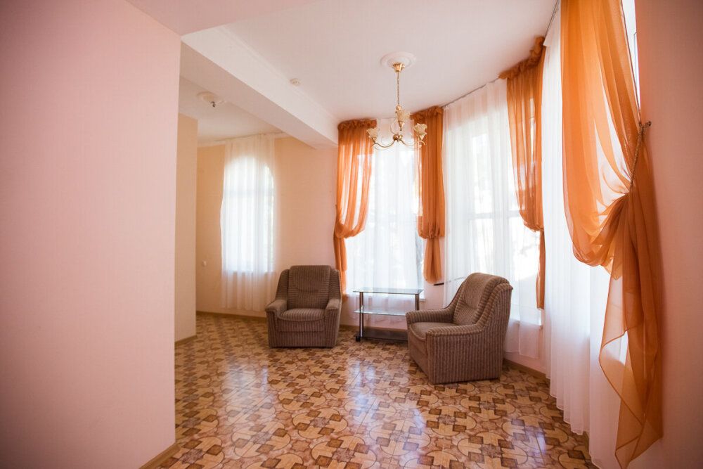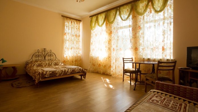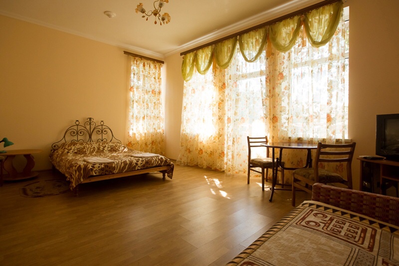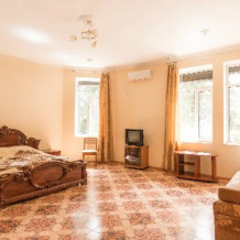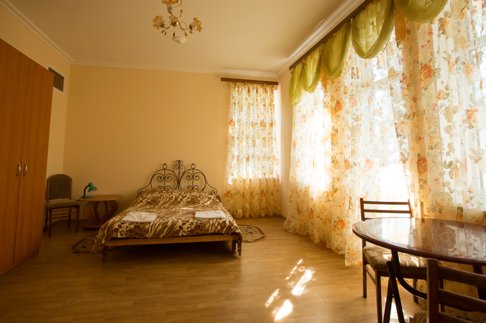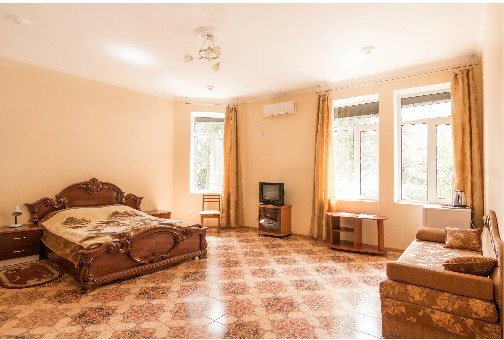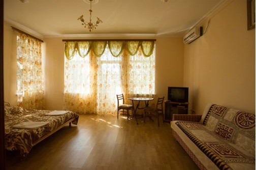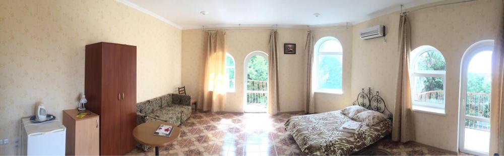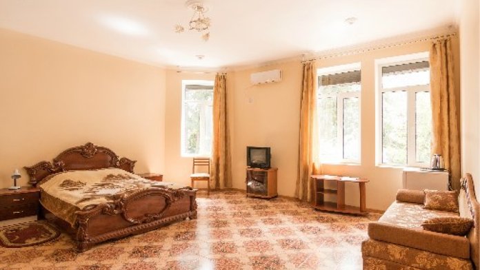 В отеле Вы сможете разместиться в номерах эконом класса, люксах и апартаментах. В апартаментах, площадью более 100 кв м, могут удобно разместиться до 8 человек. В номере 2 спальни, 2 санузла, кухня, кондиционеры, спутниковое телевидение. С апартаментов открываются удивительные по своей красоте виды на море, горы, парк. Номера люкс рассчитаны на проживание до 4 человек. Они снабжены удобной мебелью, кондиционером, спутниковым телевидением, холодильником, санузлом, душем и другими удобствами. Все номера с видом на море. В большинстве из них имеются кухни.