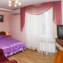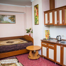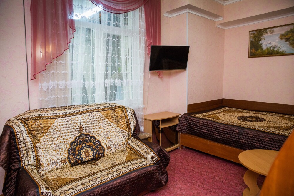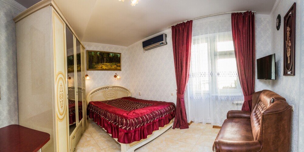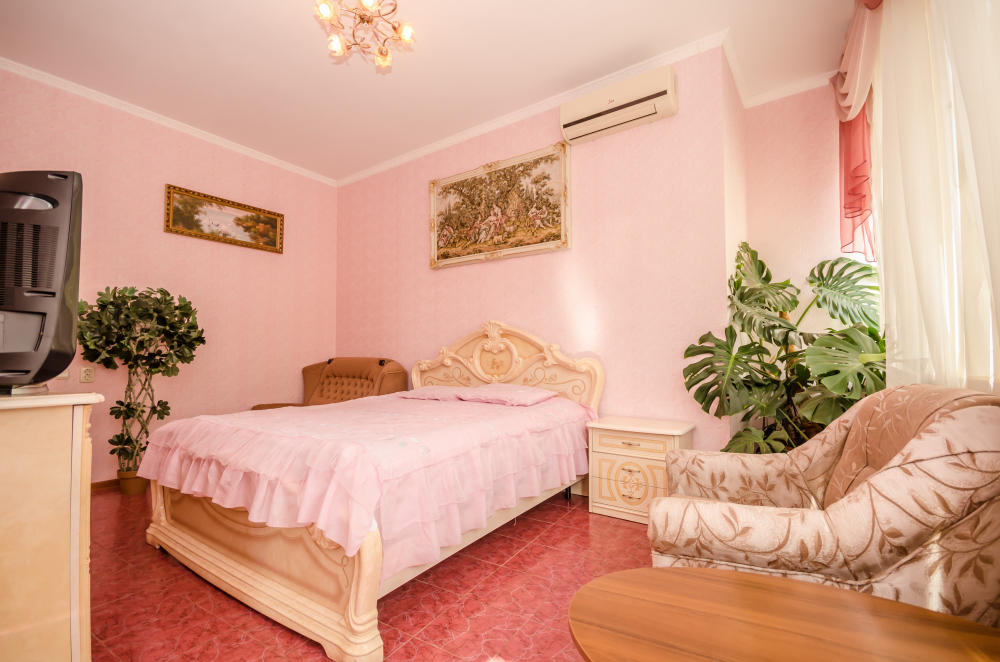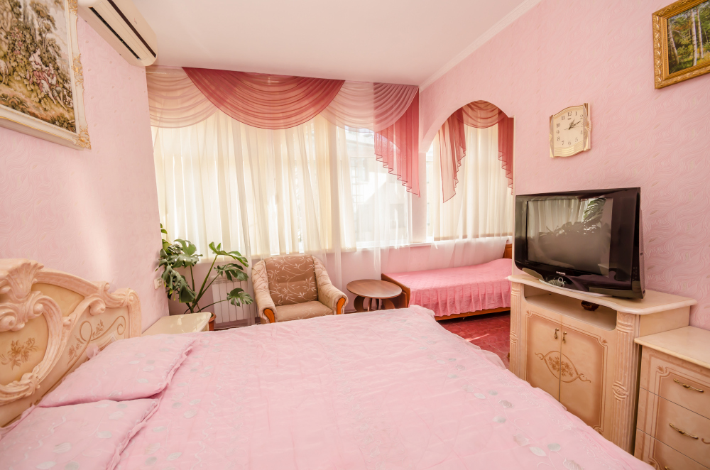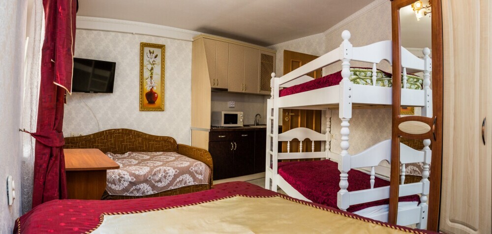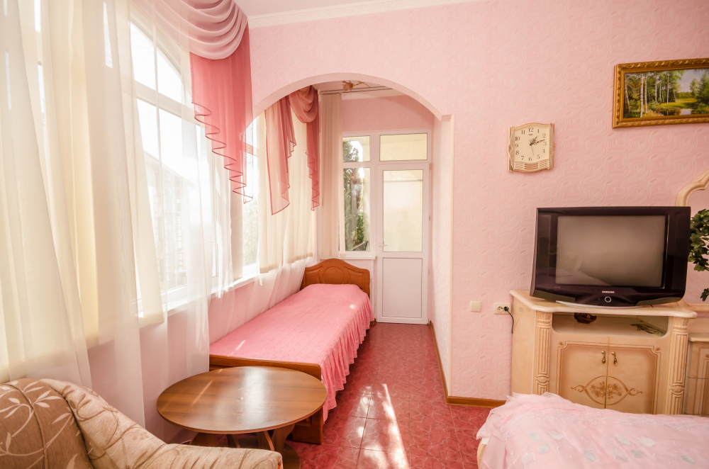 Как и все хорошие гостевые дома Алупки, мы предлагаем своим гостям разнообразный номерной фонд. К Вашим услугам номера различного класса и вместительности, начиная от небольших уютных 2-местных и оканчивая шикарными апартаментами на 7 человек.