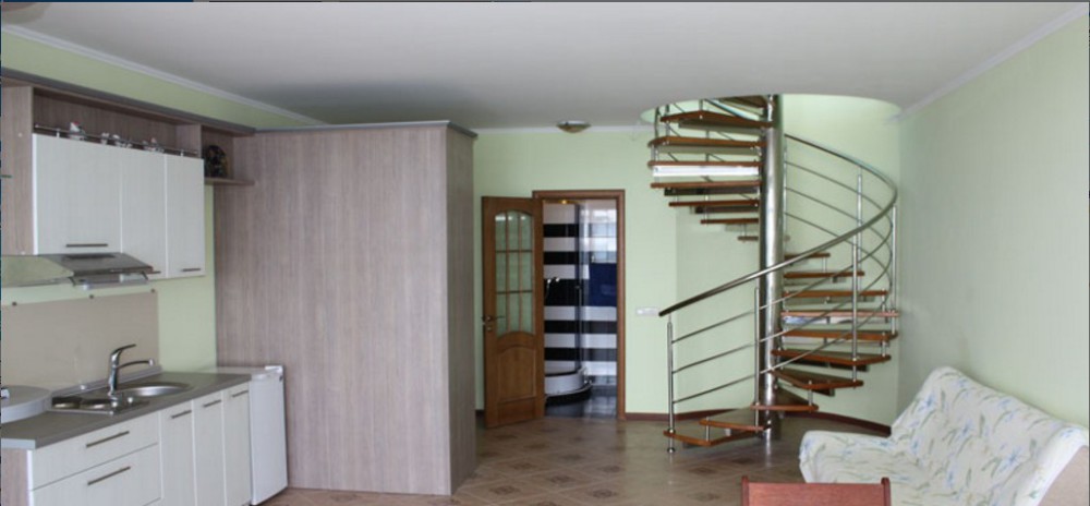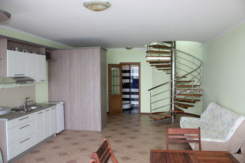 - Люкс в двух ярусах с собственным двориком (первый ярус - гостиная, кухня, санузел, балкон; второй ярус - спальня, ванная комната с джакузи на двоих и большая открытая терраса с видом на Ялту).