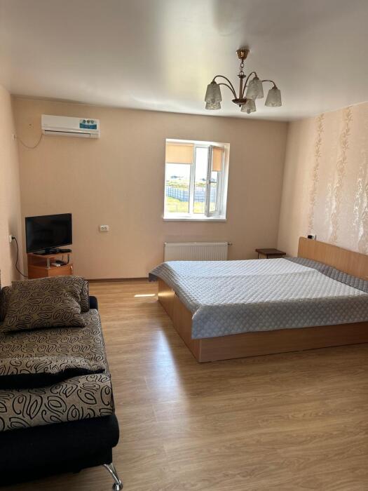 В номере: 2 просторные комнаты, 2 дивана раскладных, одна двухспальная кровать, стол, стулья, телевизор, холодильник, микроволновая печь, кухонный уголок, шкаф с вешалкой, кондиционер, wi-fi.