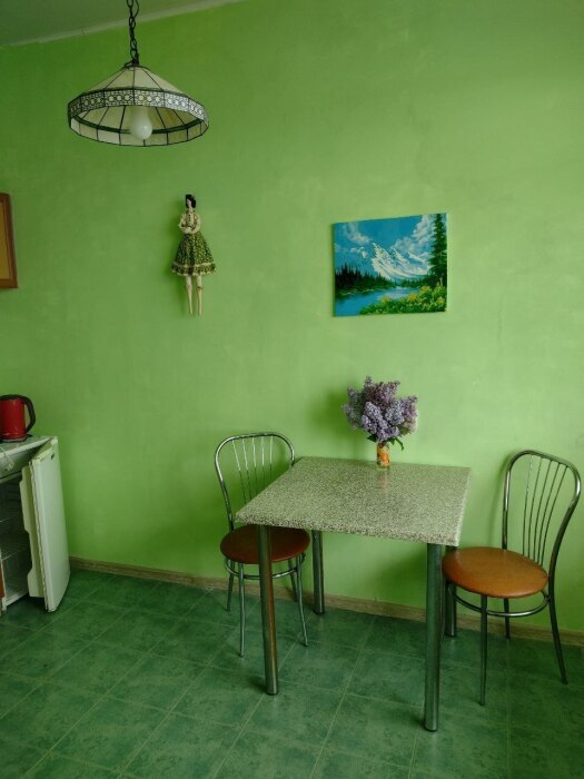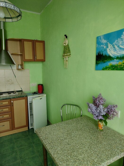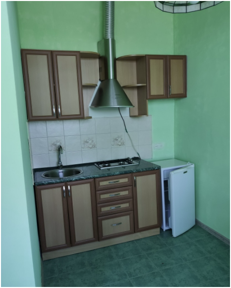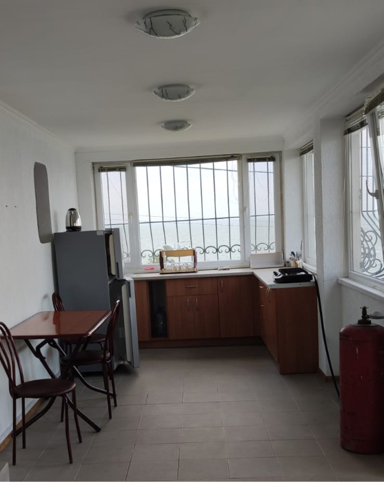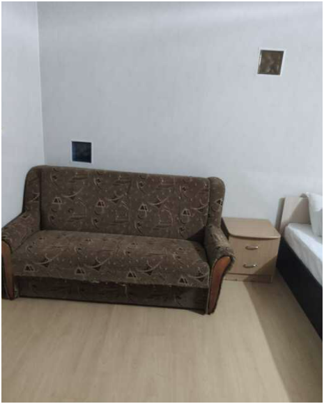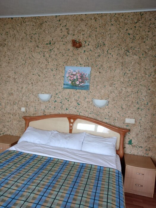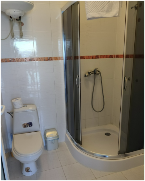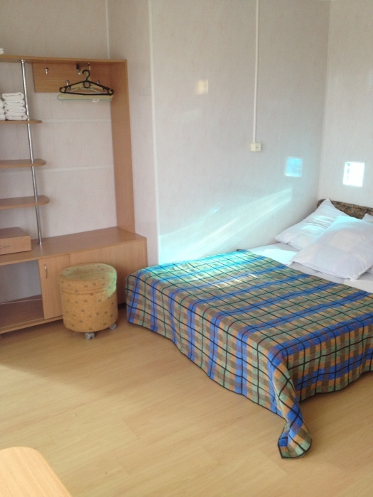 В номере: двухспальная кровать, раскладной диван, тумбочки, столик журнальный, полки и ящики для белья, телевизор, кондиционер, душ, туалет в номере, горячая вода (электробойлер).