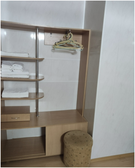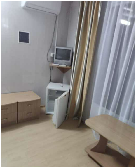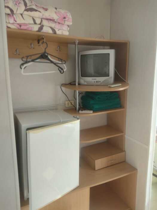 В номере: 3 кровати, тумбочка, столик журнальный, полки и ящики для белья, телевизор, кондиционер, душ, туалет в номере, горячая вода (электробойлер).