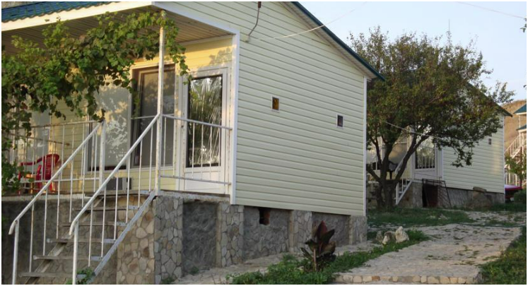 Номера двухместные расположены в коттеджах (по 2 номера в одном коттедже, вход раздельный, терраса через перегородку).