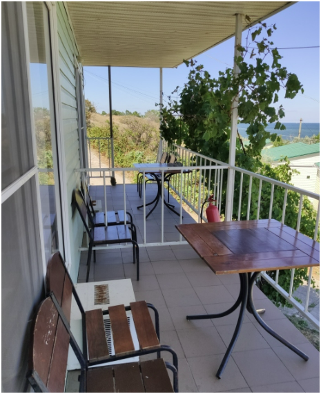 Номера трехместные расположены в коттеджах (по 2 номера в одном коттедже, вход раздельный, терраса через перегородку).