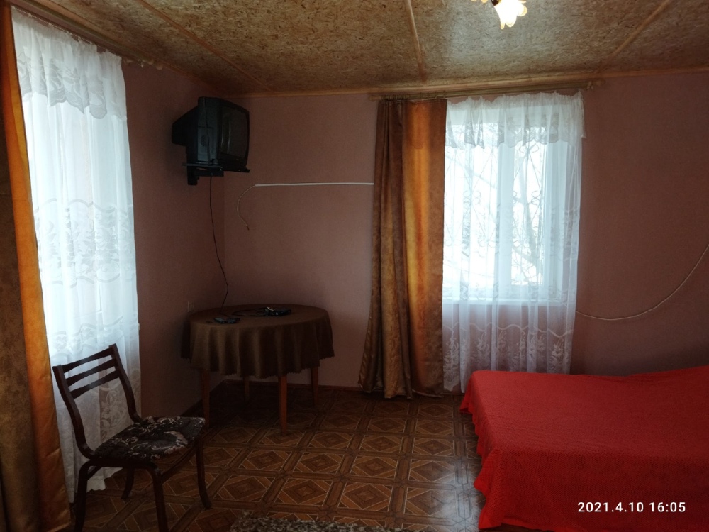 На втором этаже большая комната с балконом. В комнате имеются: 2-спальная кровать и диван, шкаф, телевизор (спутник).