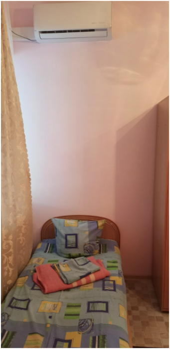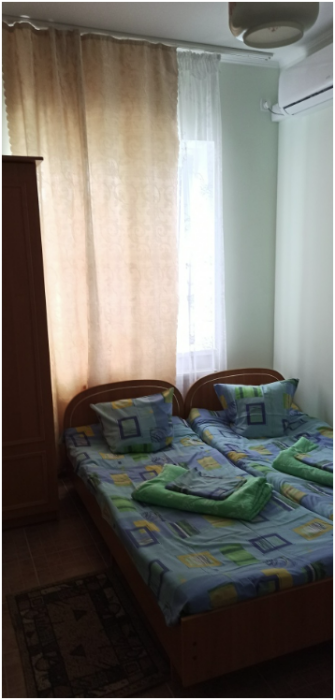 Домовладение состоит из 4 номеров - 2 трёхместные и 2 двухместные. Трёхместные номера имеют отдельные душевую и санузел, двухместные имеют туалет и душ общие на 2 номера. В номерах кровати, шкафы, тумбочки, настенные телевизоры, кондиционеры сменное постельное. Имеется большая открытая кухня-столовая со всем необходимым для приготовления и приема пищи. Wi-fi, цифровое и интернет ТВ. Благоустроенный двор с автостоянкой.