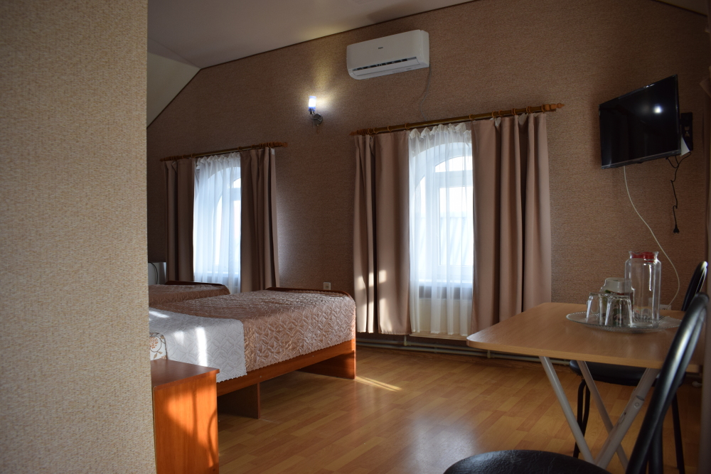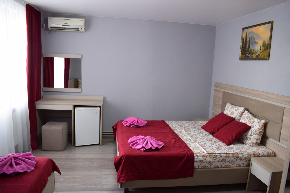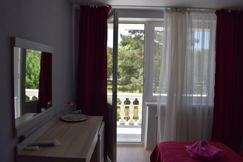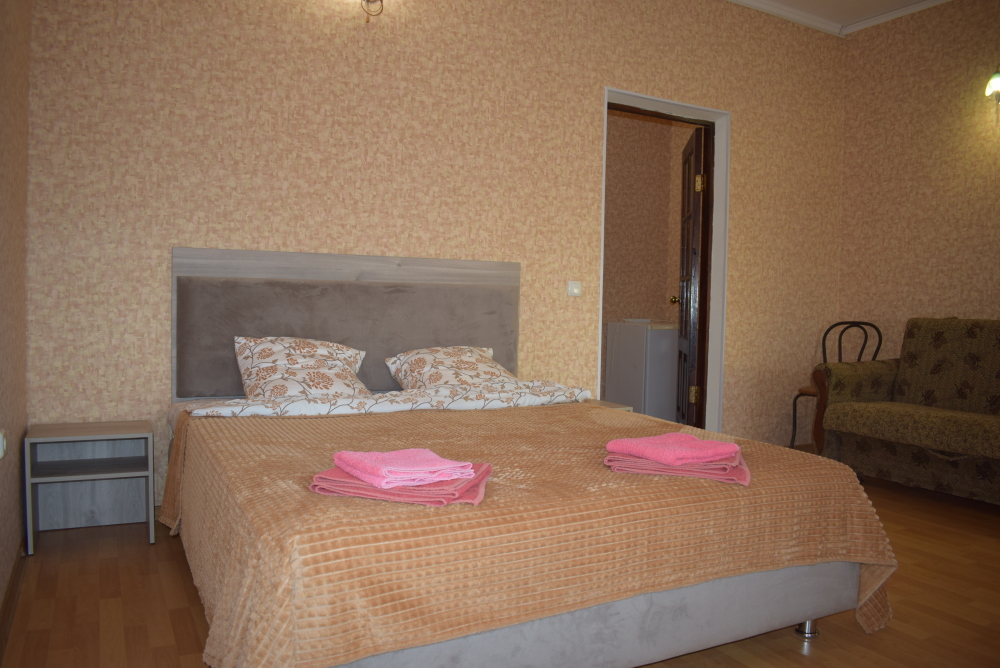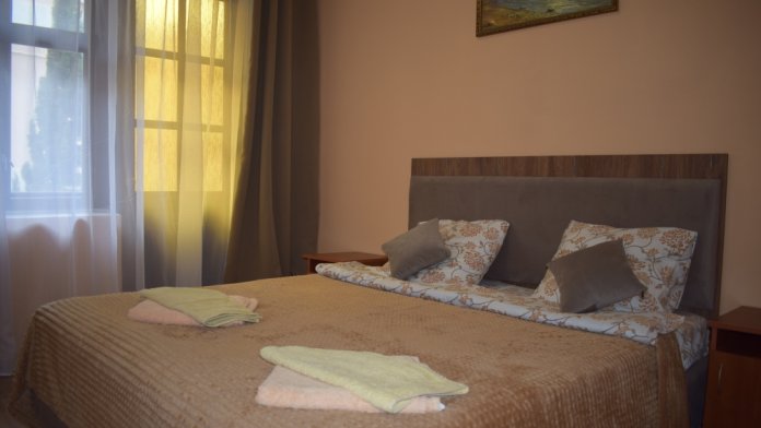 Уже 10 лет хозяева радушно принимают туристов со всех уголков страны. Для романтичных пар и отдыха с детьми найдутся комфортабельные однокомнатные двух-трехместные номера и двухкомнатные апартаменты на 4-5 человек. В каждом из них размещены балкон или лоджия, где вы сможете наслаждаться вечерней прохладой. Чистые пляжи с мягким дном всего в 100 метрах от здания свободны для посещения в любое время суток.