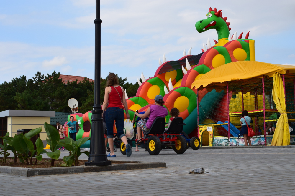 На территории коттеджа обустроена детская площадка для игр с малышом в тени.На побережье тоже не соскучишься – веселые дискотеки с аниматорами, батут, водные аттракционы приведут в восторг ваших мальчишек и девчонок. Обилие местных овощей, фруктов, вкуснейшие авторские блюда порадуют маленьких гурманов витаминным коктейлем. Безопасные места для купания позволят мамам и папам весело плескаться даже с крохами, не боясь обрывов и внезапной глубины.