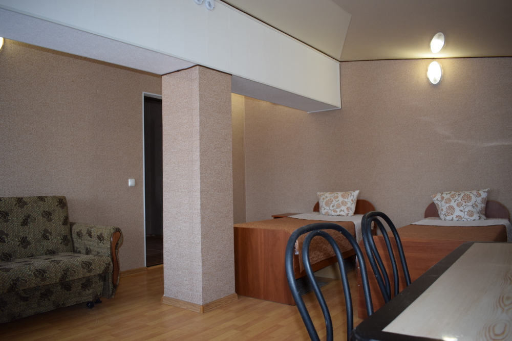 Четырехместный двухкомнатный номер. Комнаты друг от друга изолированы. В номере есть все необходимое. Большой балкон. Цена указана за номер без питания. Питание оплачивается отдельно. Завтрак -400 руб. обед- 550 руб.