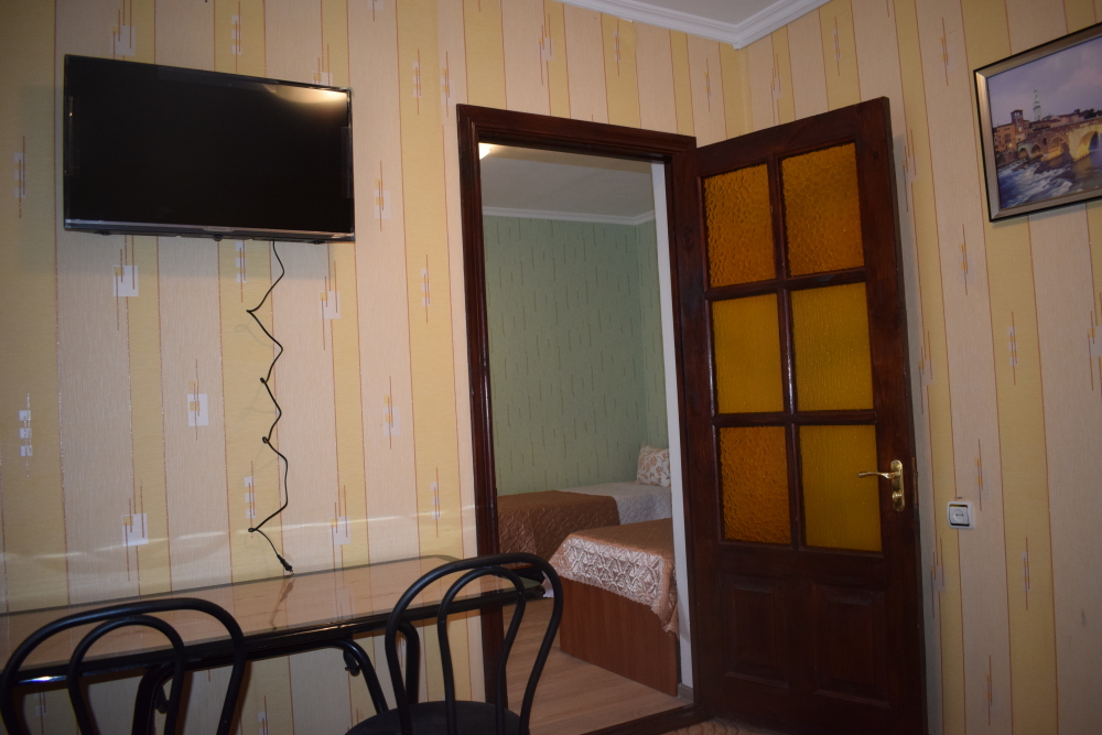 Пятиместный двухкомнатный номер. В номере есть все необходимое для проживания и отдыха. Два санузла, в каждой комнате ТВ. С одной комнаты выход на большую лоджию, с другой комнаты ваход на балкон. Цена указана за номер без питания, Питание оплачивается отдельно : завтрак -400 руб. обед - 550 руб.