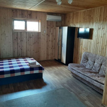 В номерах есть все необходимое для комфортного проживания: полностью оборудованная кухня (посуда, холодильник, газовая плита), санузел, душевая кабина, двуспальная кровать, диван, кондиционер, телевизор, Wi-Fi, полотенца и постельное белье, во дворе есть мангал.