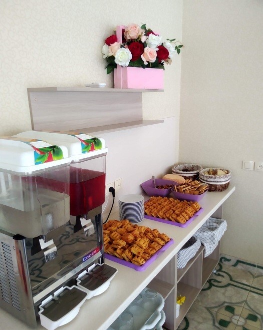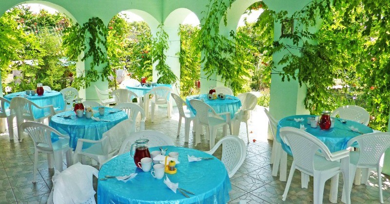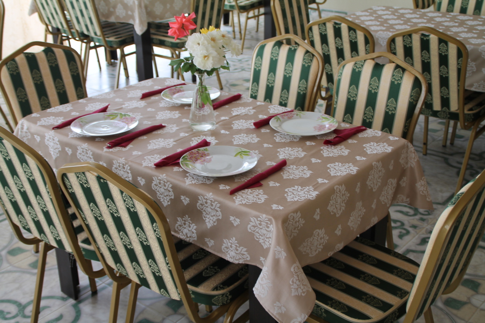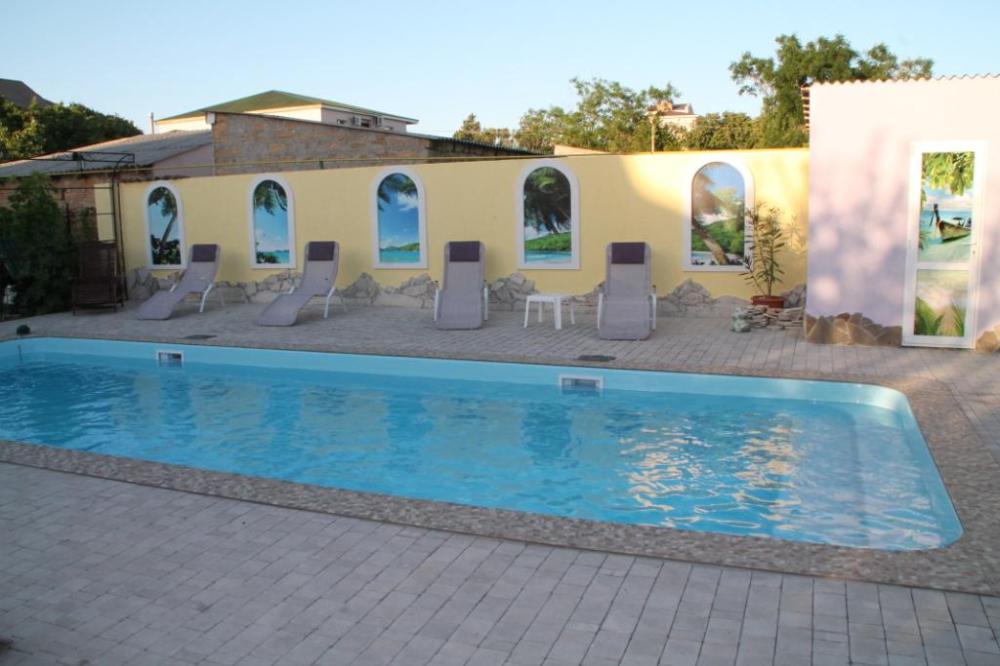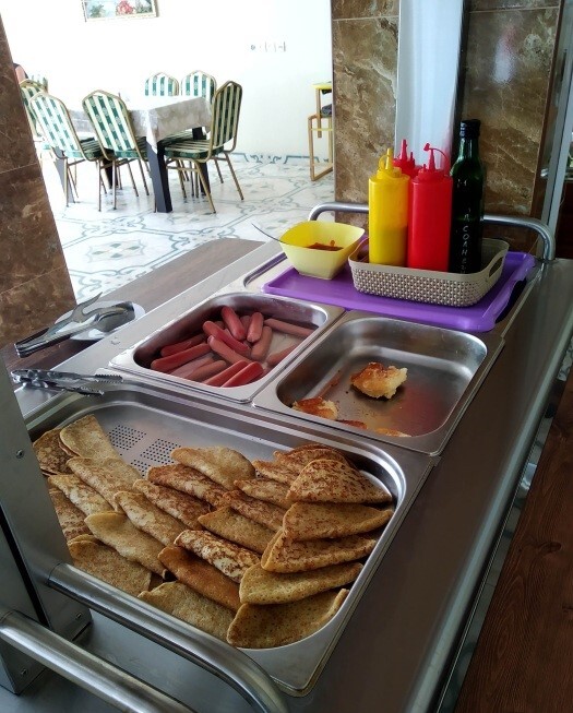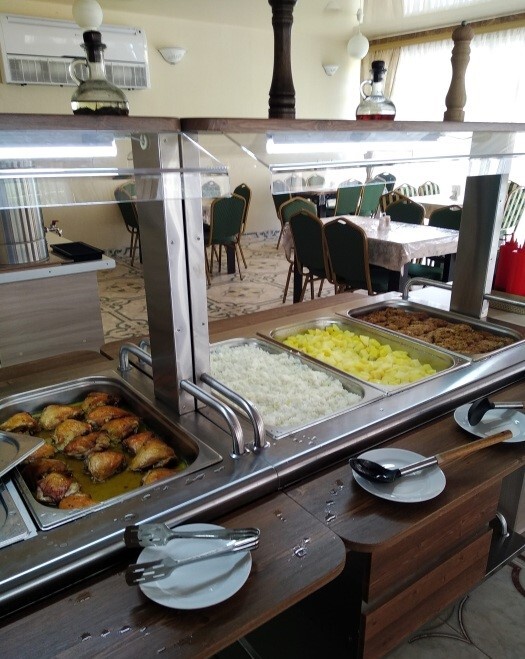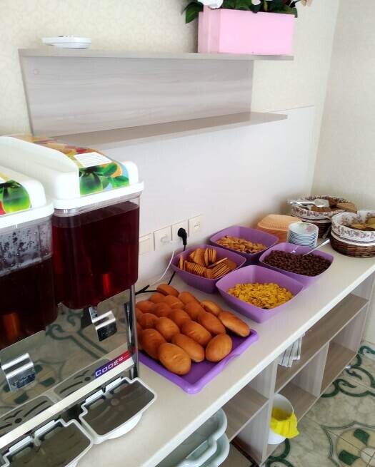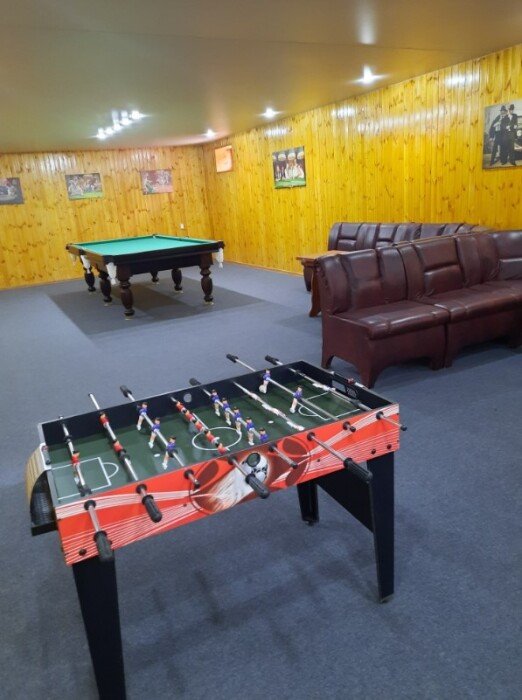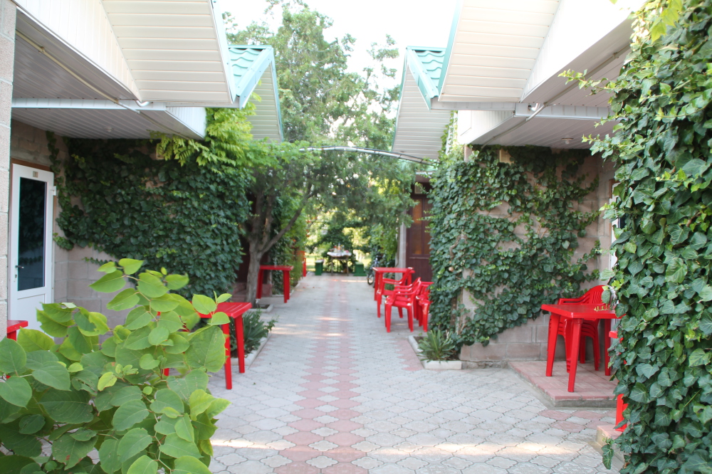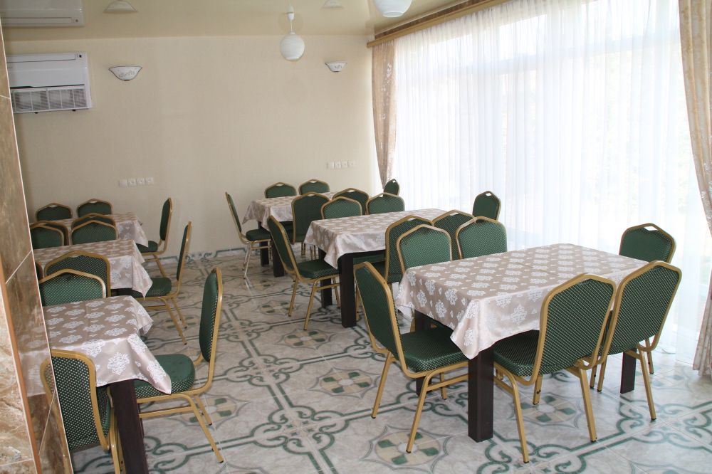 Гостиничный комплекс предлагает заказное питание: вкусные завтраки и обеды в собственной столовой на территории. Для приготовления ужинов имеется общая оборудованная кухня. Также во дворе к Вашим услугам бесплатная автостоянка, игровая площадка для детей с песочницей и качелями, также детский бассейн, а для взрослых - беседки с мангалами.