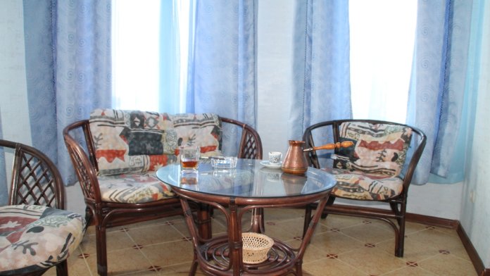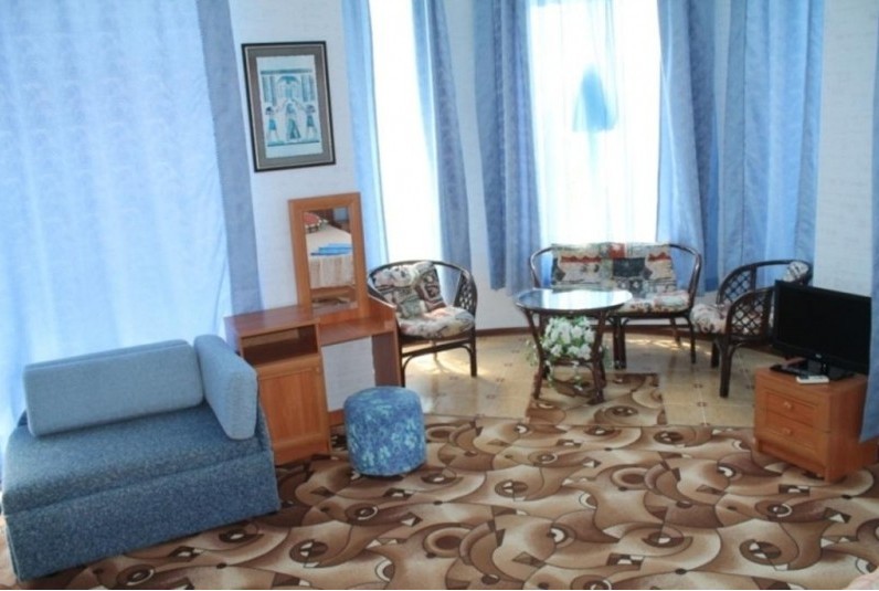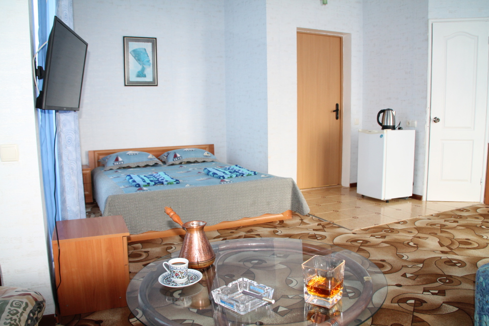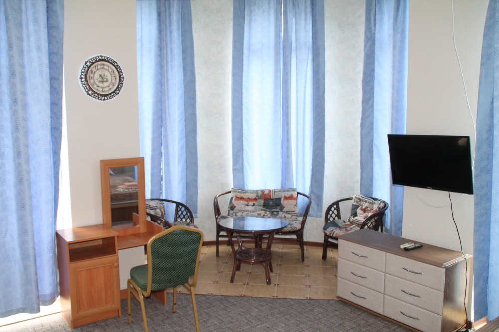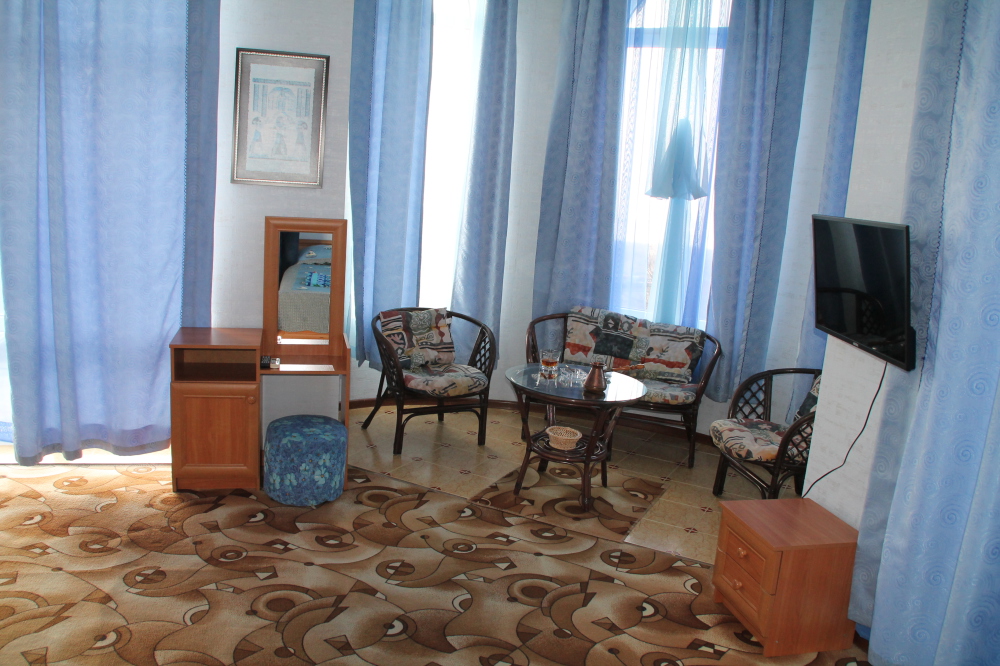 Номер в 2-этажном корпусе «Карина». Однокомнатный 30 м2 + балкон с видом на море . Рассчитан на 2 гостей. Допускается 1-2 доп. места. В Номере двухспальная 160х200 кровать, раскладной диван 160х200 или односпальная кровать 90х200. Шкаф, тумбочки, комод, трюмо, столик, кресла,стулья, ТВ,