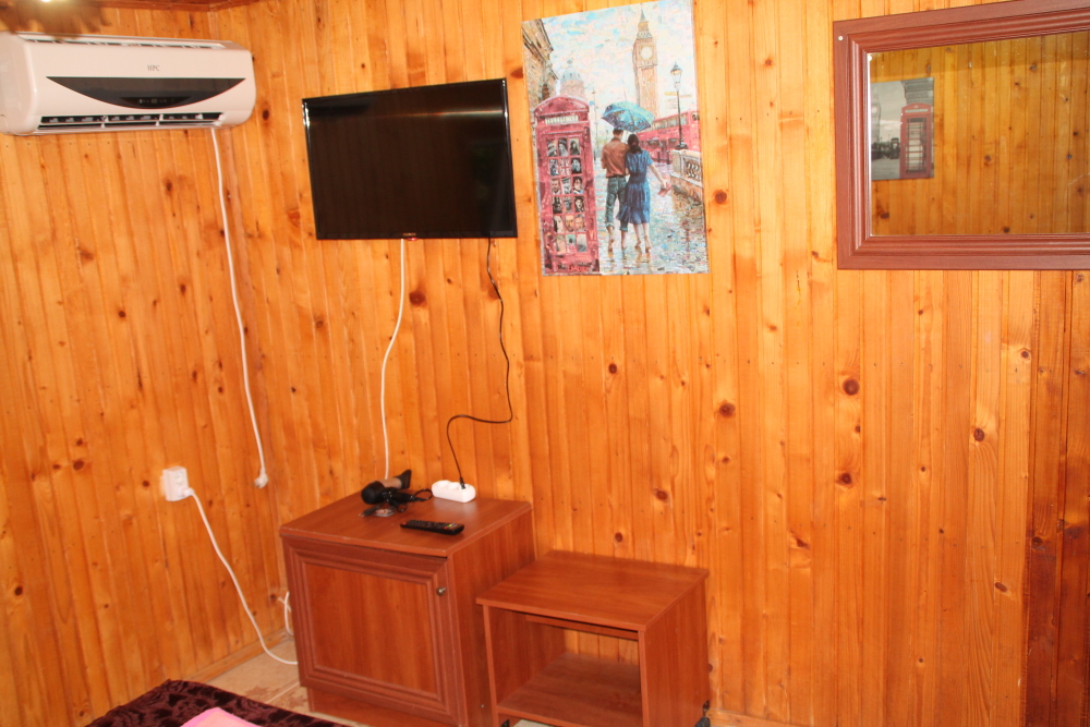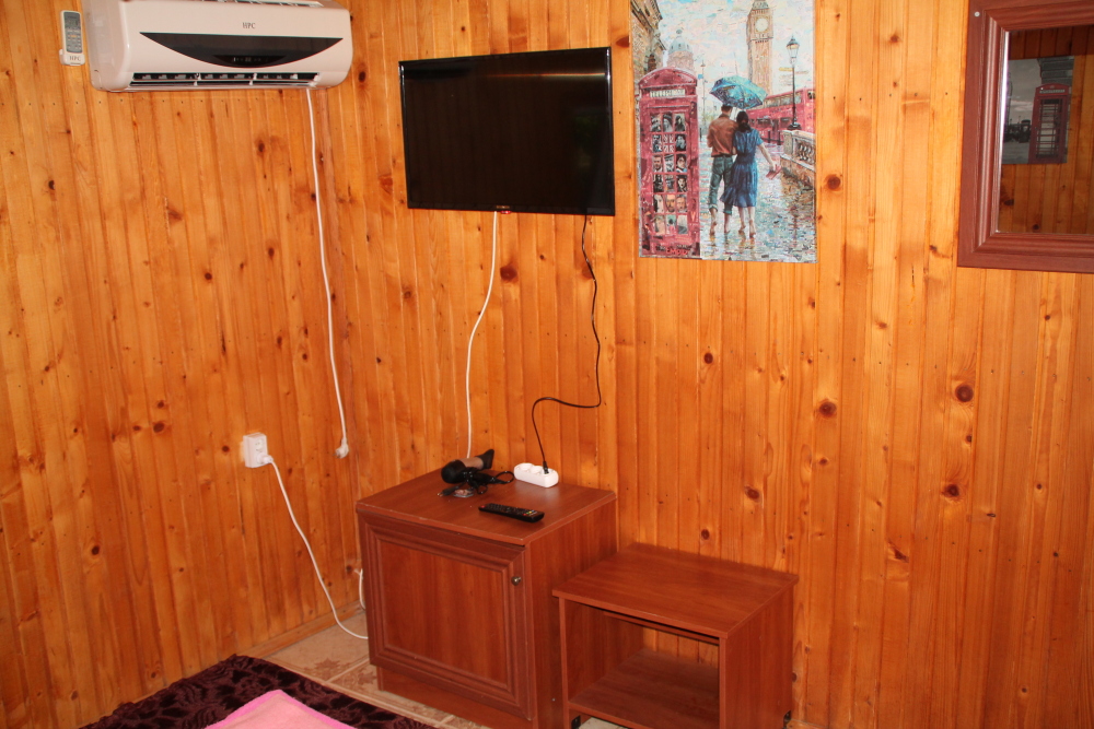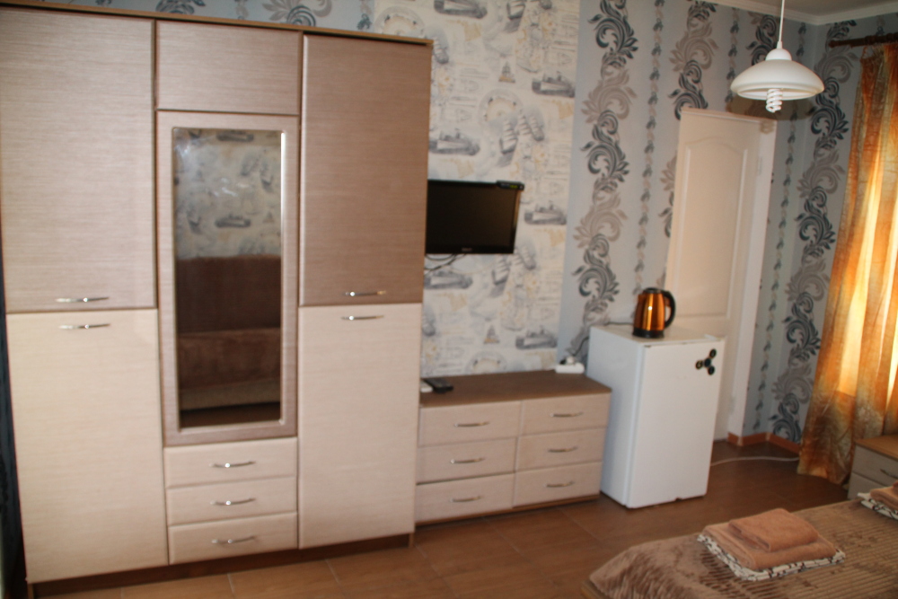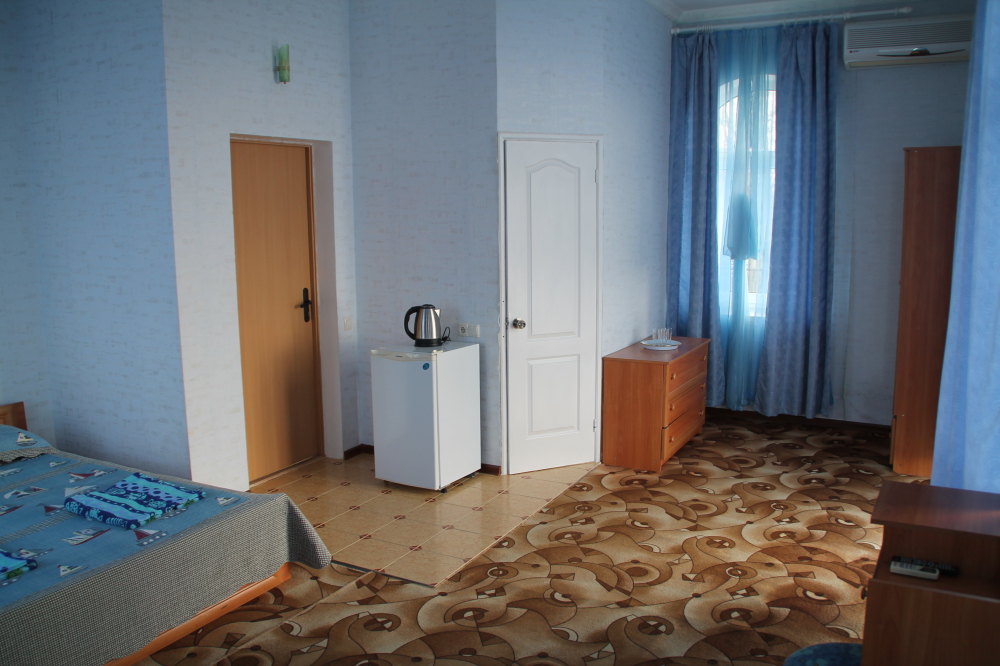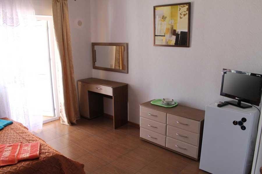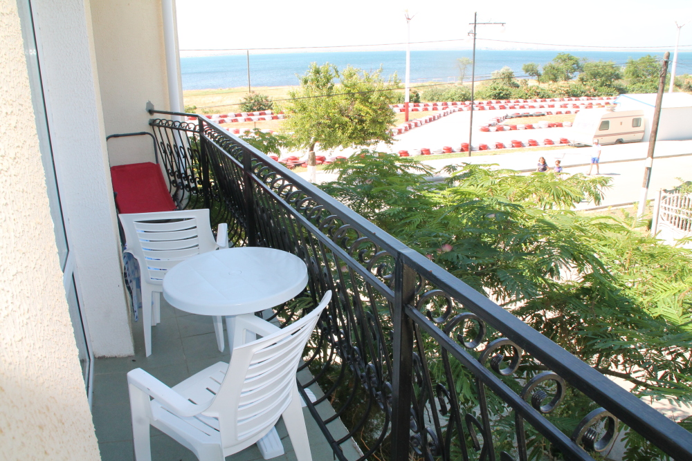 холодильник, кондиционер. Чайный набор. В каждом номере санузел с душевой кабиной и феном. На балконах стол, стулья. Вид на море.