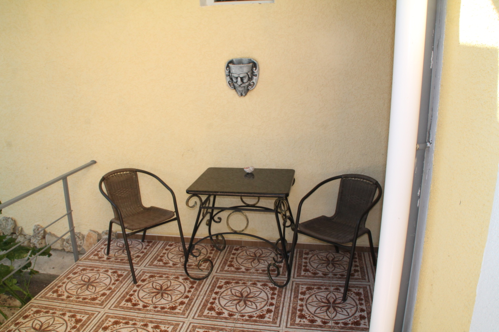 Номер в виде маленького домика на земле, однокомнатный 12 кв м. Рассчитан на 2 взрослых. Допускается 1 доп. место (ребенок). В номере двухспальная 140х200 или две односпальные 80х190 кровати. Шкаф, тумбочки, ТВ, холодильник, кондиционер. В каждом домике санузел с душем и феном. Перед домиком садовый стол, стулья. Комплекс в виде улочки из 10 домиков, напротив друг друга. Вид на бассейн.