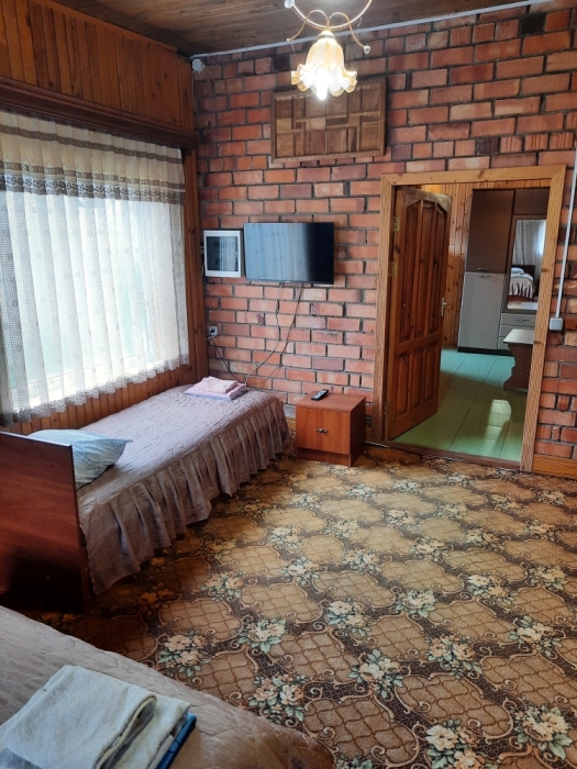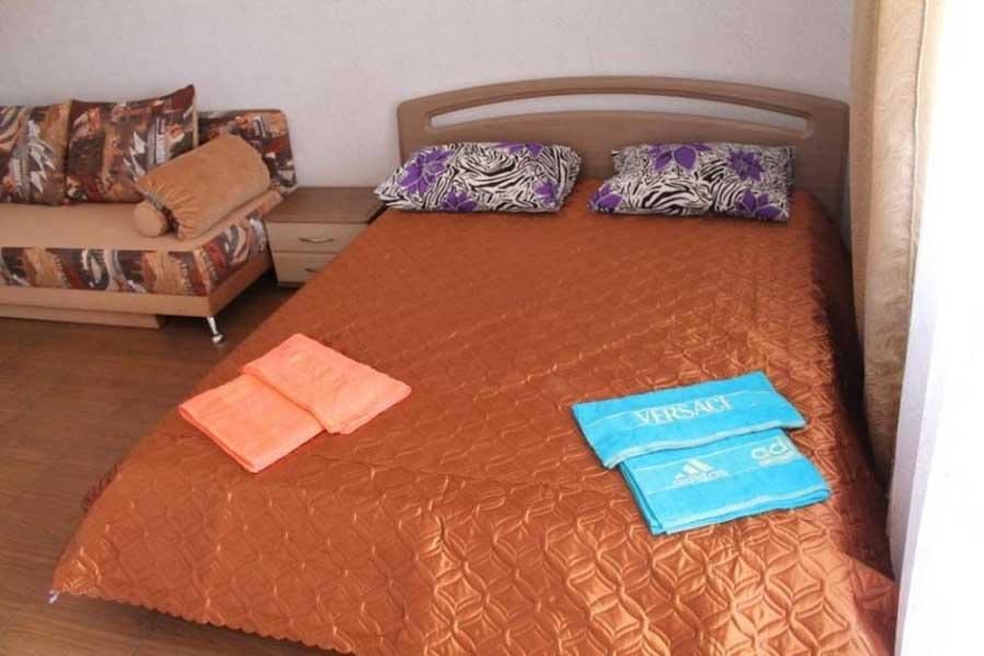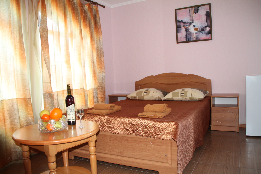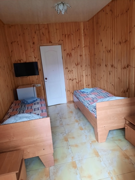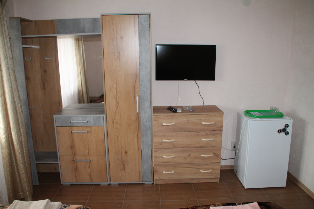 Номер в 2-этажном корпусе «Карина». Однокомнатный 20 м2 + небольшой балкон 1.5х 2.0. Рассчитан на 2 гостей. Допускается 1 доп. место. В номере двухспальная 140х200 или два спринг-бокса 90х200, раскладной диван 120х190. Шкаф, тумбочки, комод, стулья, ТВ, холодильник,