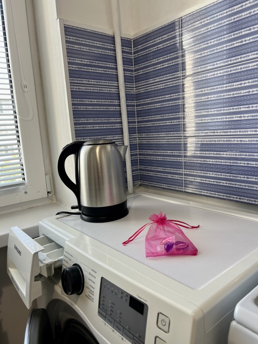 6. Гигиенические принадлежности (зубную пасту, гель д/душа, шампунь, тапочки, свежие полотенца), в качестве бонуса капсулы для стирки Вашего белья.