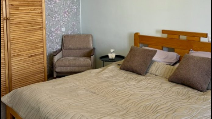 3. Широкую двухспальную кровать с ортопедическим матрасом и чистым постельным бельем для крепкого сна.