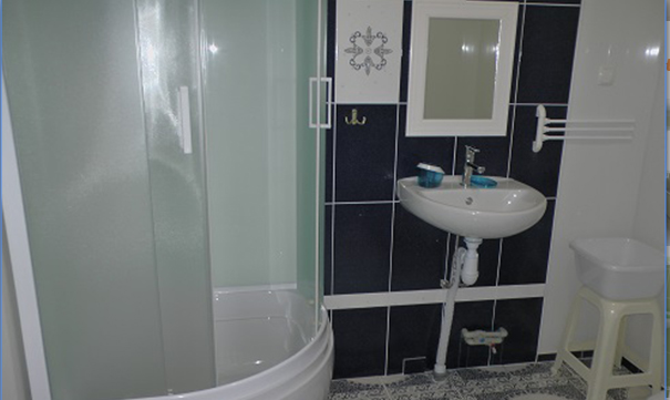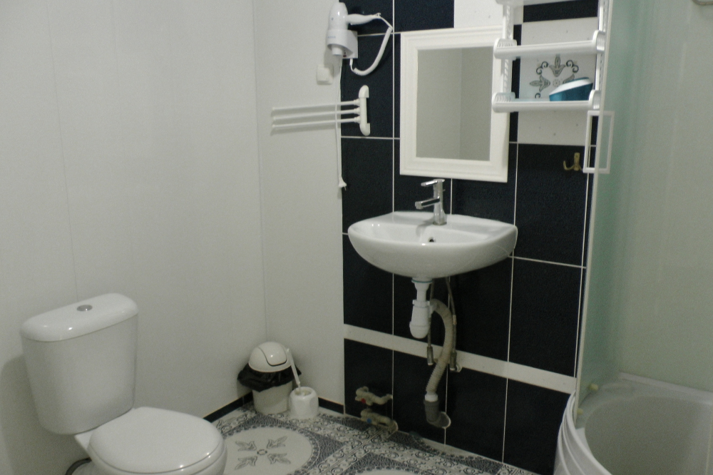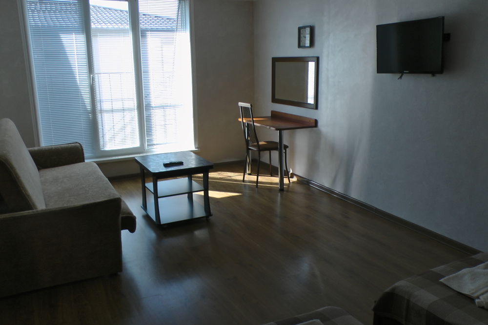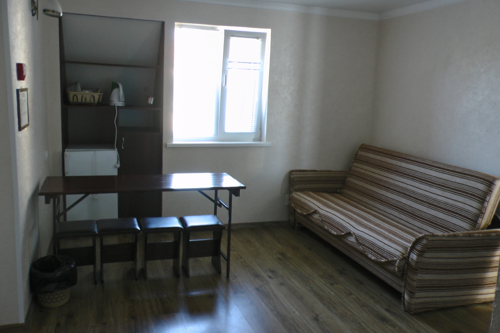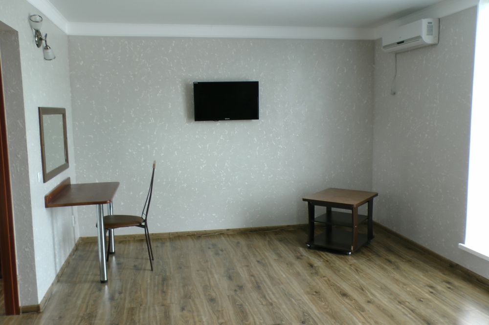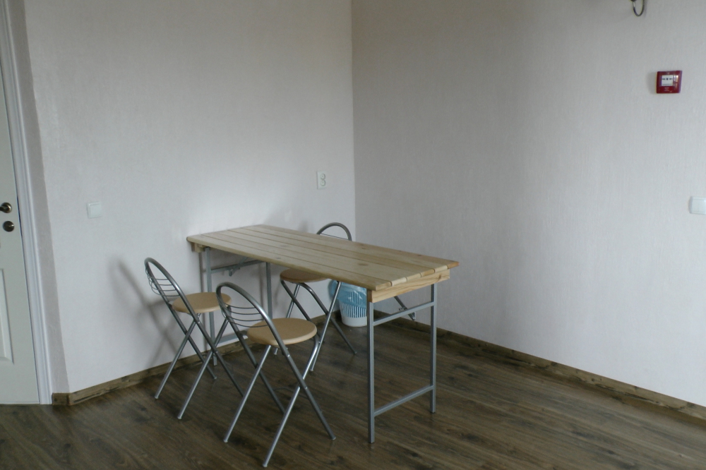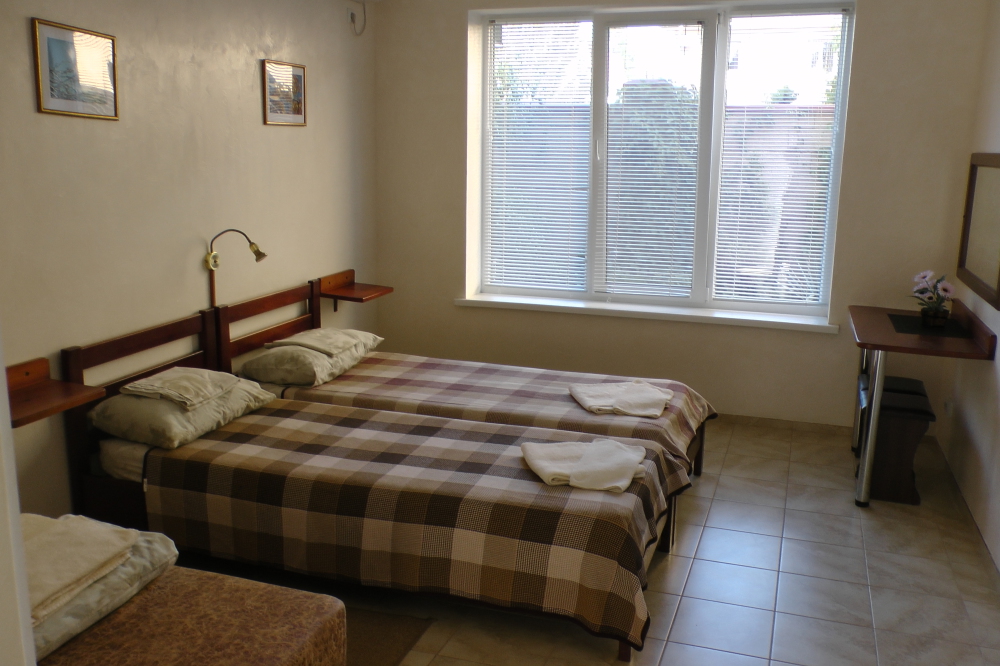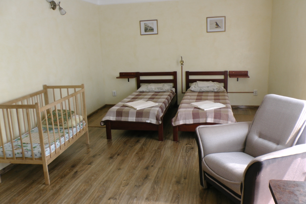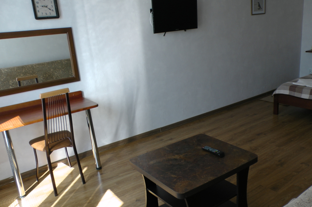 В номерах современная деревянная мебель, выдержанная в едином стиле. Кровати с ортопедическими матрасами, раскладные диванчики, встроенный шкаф с высокими полками для размещения чемоданов, столик с табуретками, прикроватные полочки - такой стандартный набор мебели расположен в номере. В санузлах однокомнатных номеров расположены душевые поддоны, туалет и умывальник, в двухкомнатных номерах – душевые кабины, туалет и умывальник. В каждом номере - фен, туалетные принадлежности, тапочки. На окнах -москитные сетки. Возле каждого номера- раздвижные вешалки для белья и полотенец. Номера оборудованы противопожарной сигнализацией.