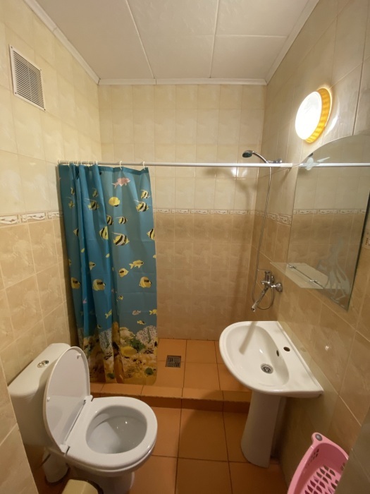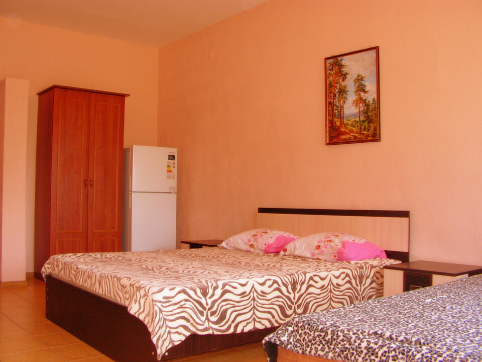 Комната 32 кв. м имеет двухспальную кровать или две полутороспальные (есть есть возможность разместить три человека