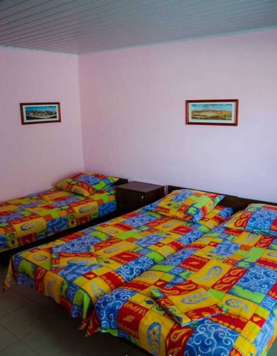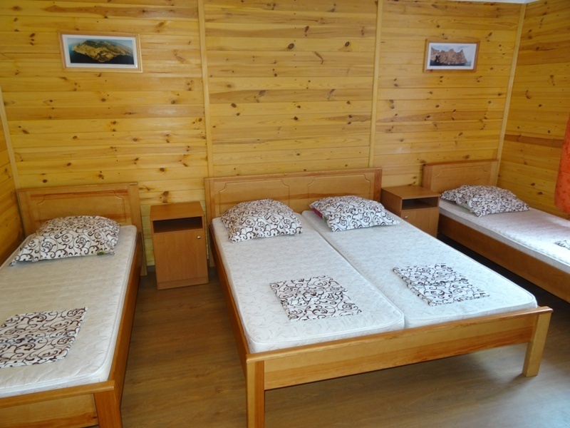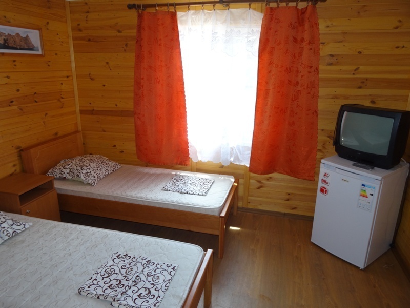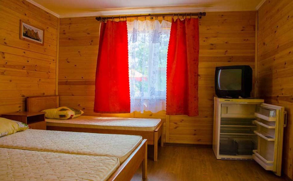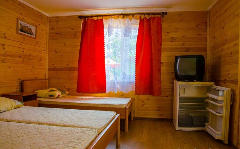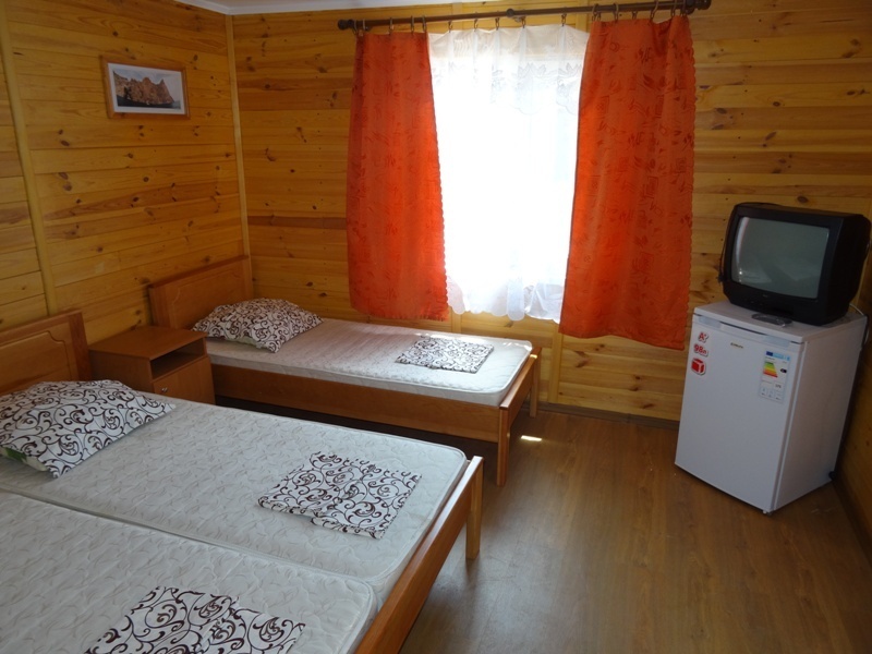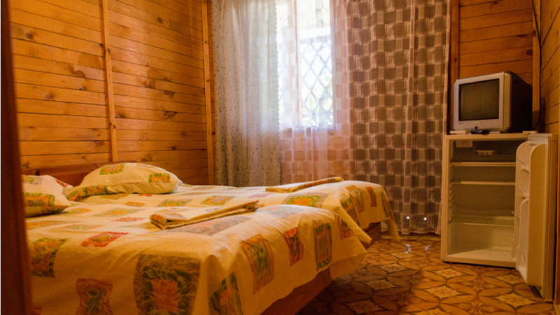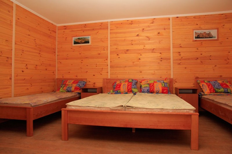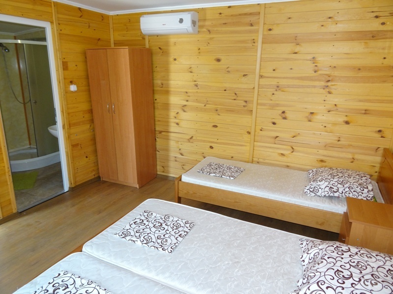 На Ваш выбор два комфортабельных одноэтажных корпуса – кирпичный и деревянный, в которых имеются двух- и трехместные номера. Также есть 3 отдельных домика, каждый из которых может принять до 5 отдыхающих. Холодная и горячая вода подаются круглосуточно. В каждом номере есть санузел с душевой кабинкой.