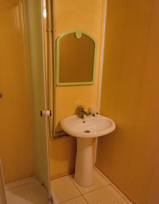 Кирпичный корпус состоит из трехместных номеров, в которых 3 одноместных кровати, тумбочки, вешалка, телевизор, кондиционер, душ, умывальник и туалет.