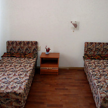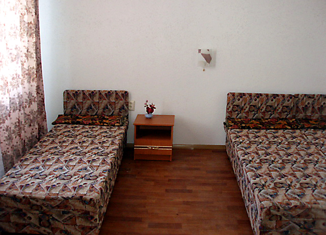 Все номера отеля имеют отдельный вход, каждый, свой маленький зеленый дворик. Мы предлагаем в каждом номере свою отдельную кухню. Газовая плита, набор посуды, холодильник. В комнате для отдыха 2-4 кровати, шкаф, тумбочка, телевизор.Свой отдельный санузел с постоянной холодной и горячей водой, душ. Номера практически все одинаковые, в них размещаются по 2-4 человека.