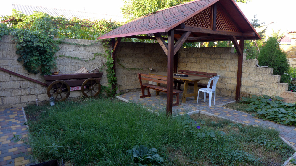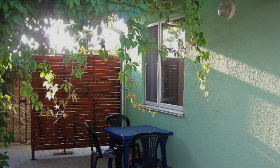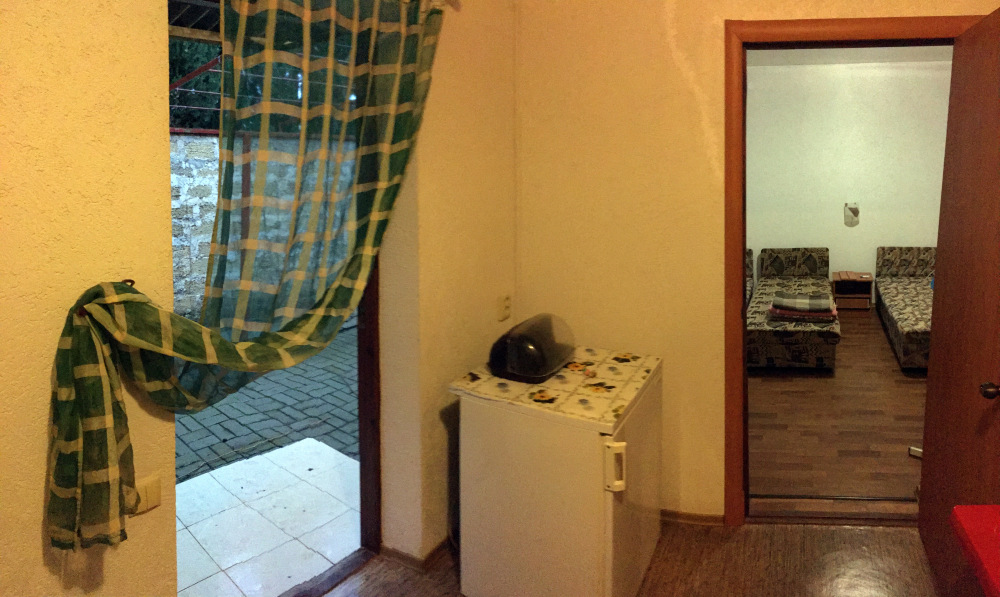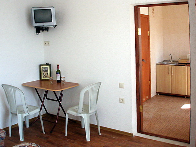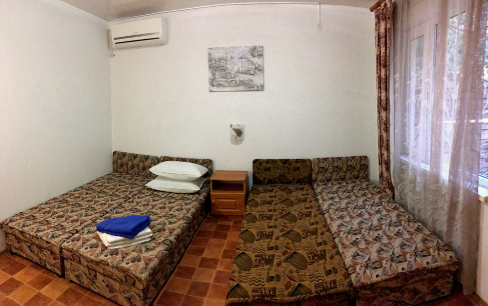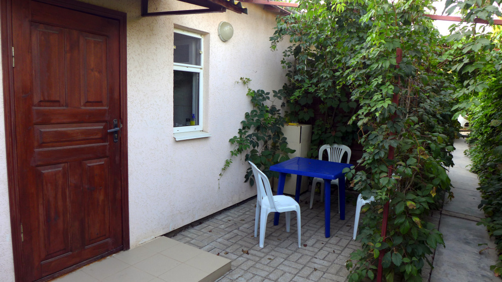 Мы предлагаем вам отдохнуть в нашем мини отеле. Все номера отеля имеют отдельный вход, каждый, свой маленький зеленый дворик, где можно отдохнуть в тени после морских купаний и здесь же покушать. Мы предлагаем в каждом номере свою отдельную кухню, полностью укомплектованную для приготовления пищи. Газовая плита, набор посуды, холодильник – все это в вашем личном распоряжении. В комнате для отдыха 3-4 кровати, шкаф, тумбочка, телевизор и вентилятор. Свой отдельный санузел с постоянной холодной и горячей водой, душ. Для отдыхающих на автомобиле, на территории отеля имеется небольшая стоянка. Она бесплатная.
