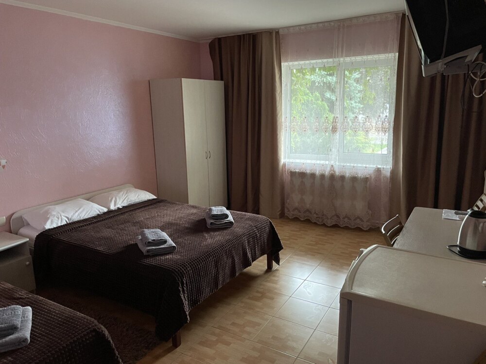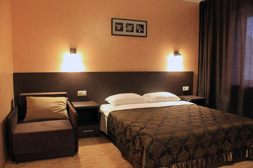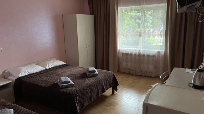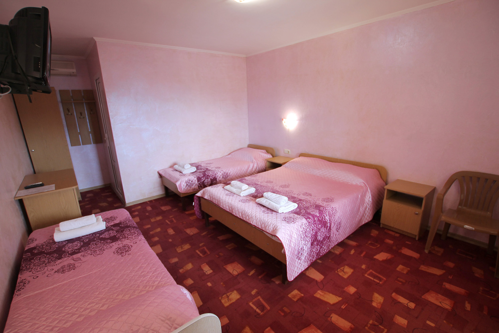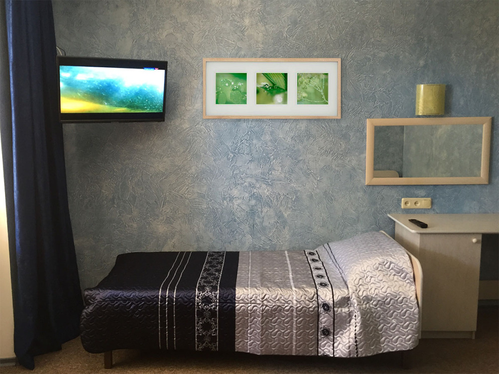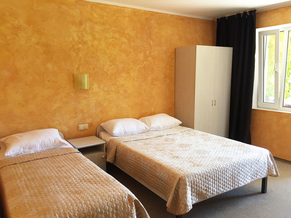 - Стандарт – однокомнатный 3,4-местный) номер 20 м2 без балкона на первом этаже со всеми удобствами, TV, холодильник, чайник, кондиционер.