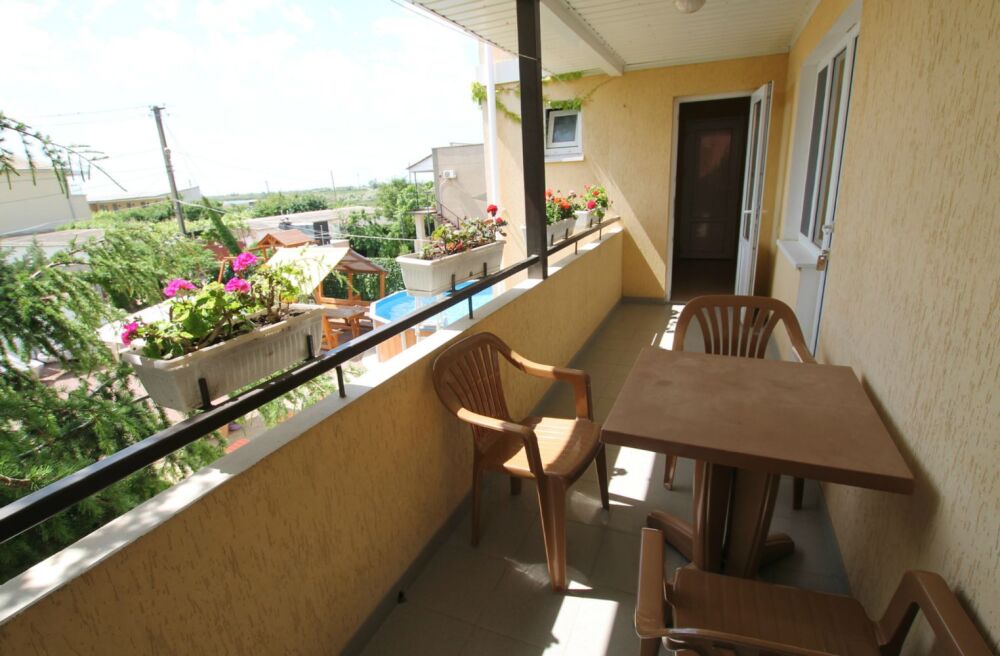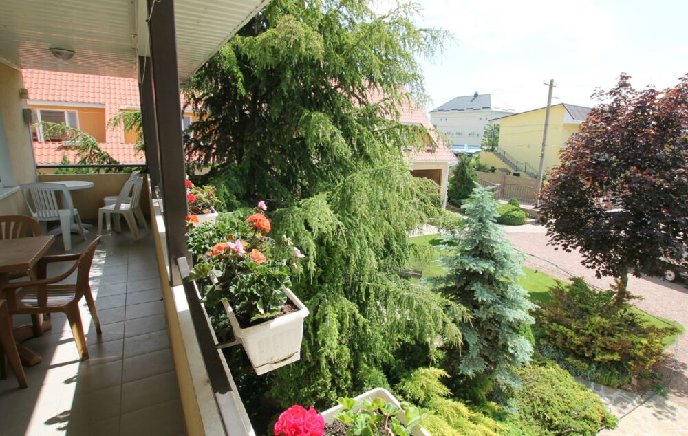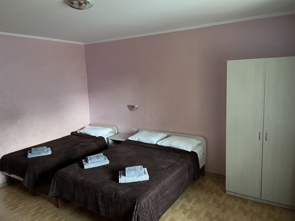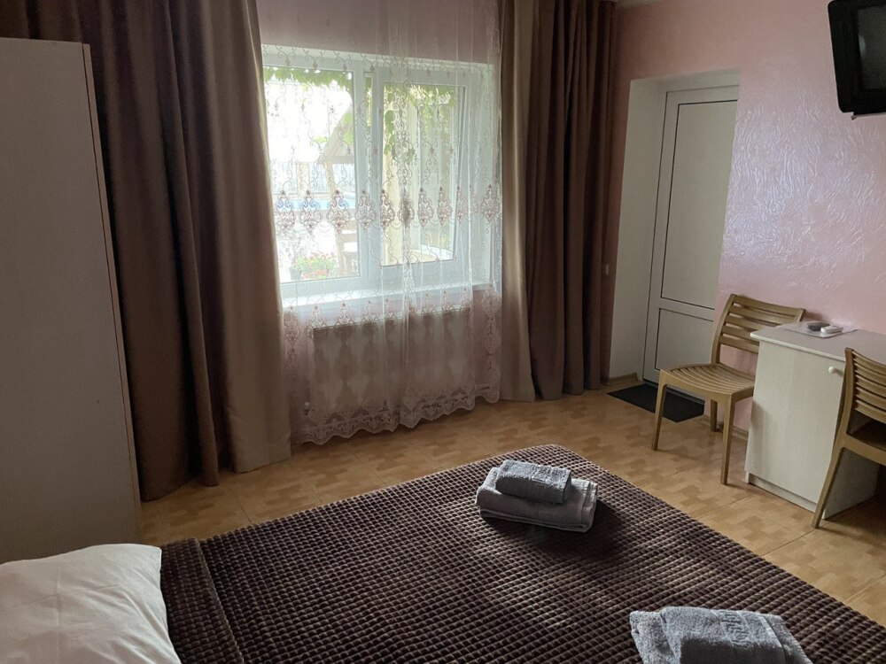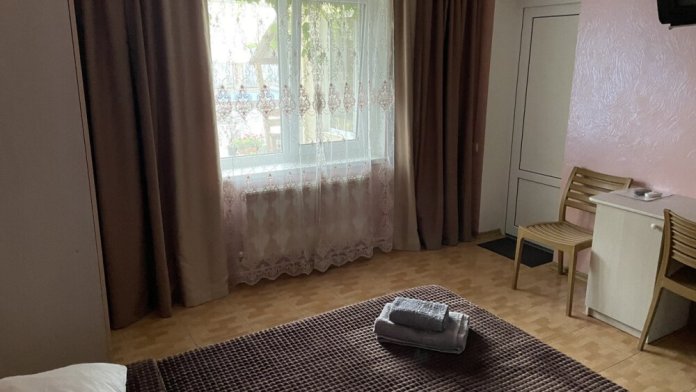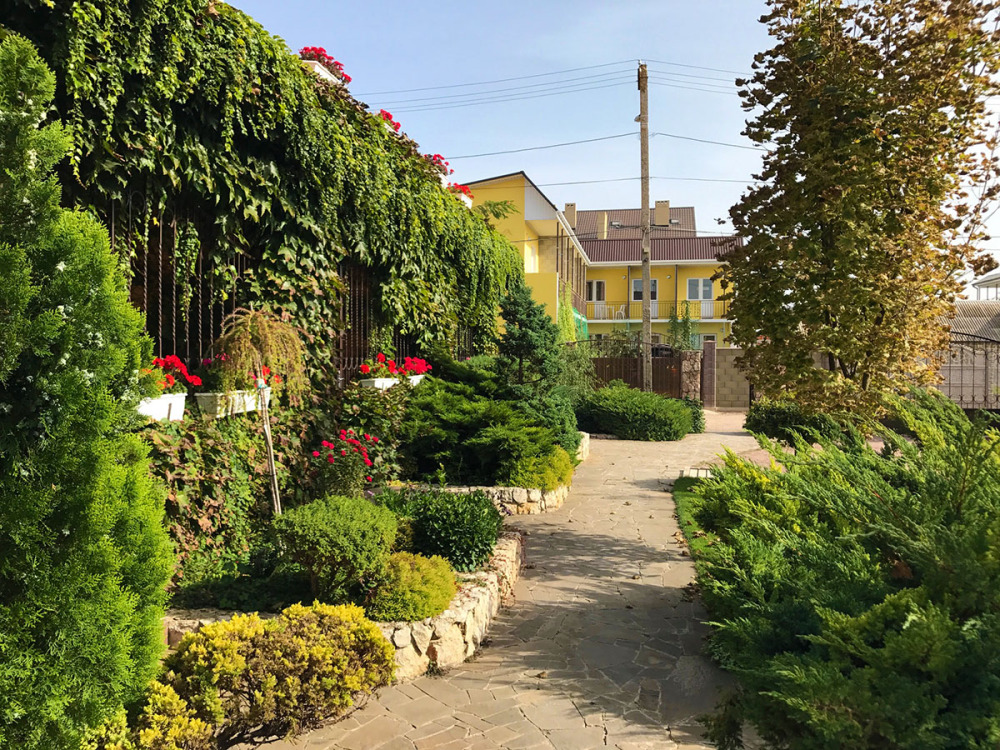 Гостевой дом состоит из двух корпусов, расположен в пгт. Новофёдоровка, 5-7 минут ходьбы до моря. Дорога до пляжа без уклона. Сам пляж песочно-галечный и очень большой. Около берега мелко.