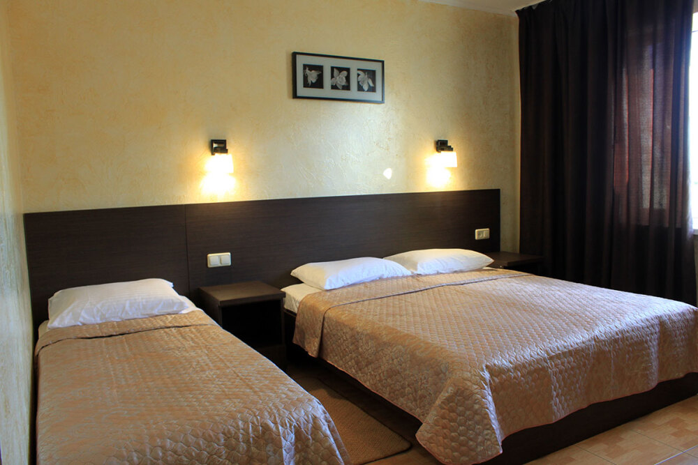 - Комфорт – однокомнатный (2,3,4-местный) номер 15-20 м2 с балконом на 2-3 этаже со всеми удобствами, TV, холодильник, чайник, кондиционер.