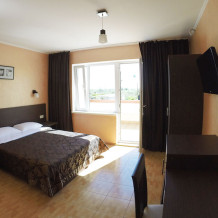 - Комфорт улучшенный – однокомнатный номер 22 м2 с лоджией 10 м2 на 1 этаже со всеми удобствами, TV, холодильник, кондиционер, сейф, чайник.
