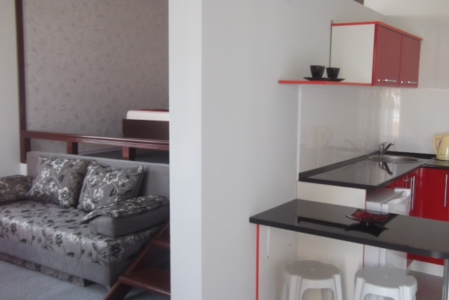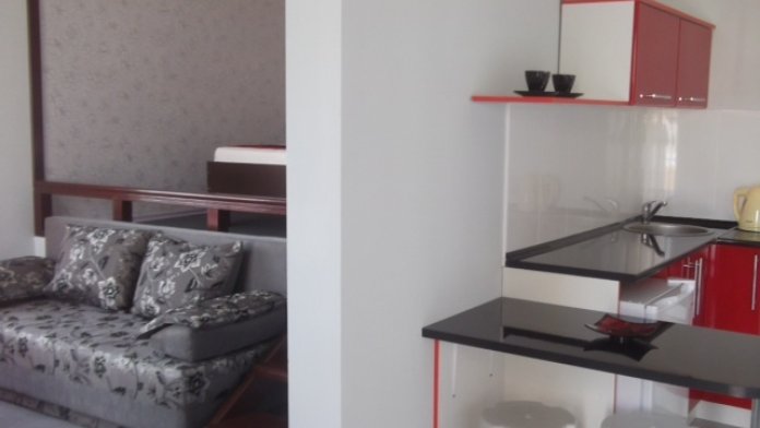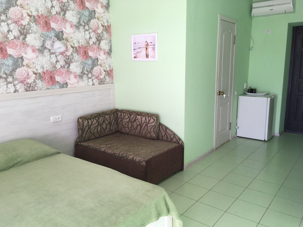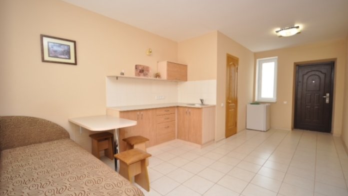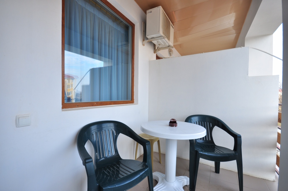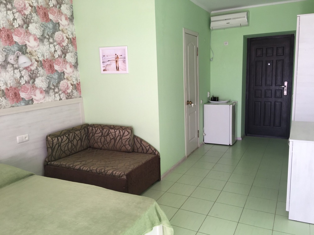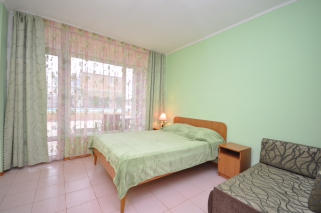 Номер люкс студия 4-местный. Второй этаж, есть лоджия с видом на бассейн.