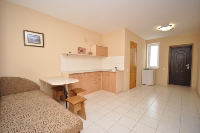 Номер люкс-студия на первом этаже, 4-местный. Вид на бассейн.