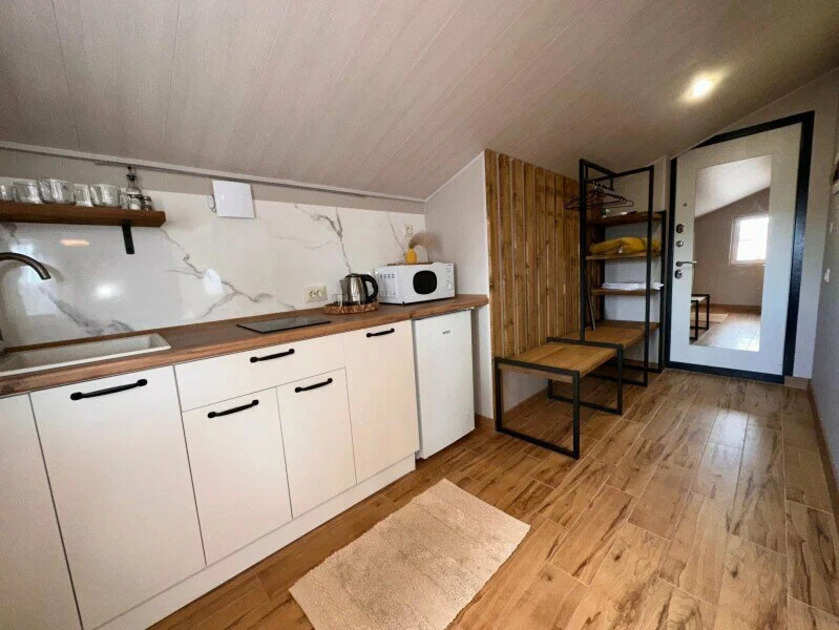 Уютная и комфортная студия с отельной спальней и кухней гостиной.
