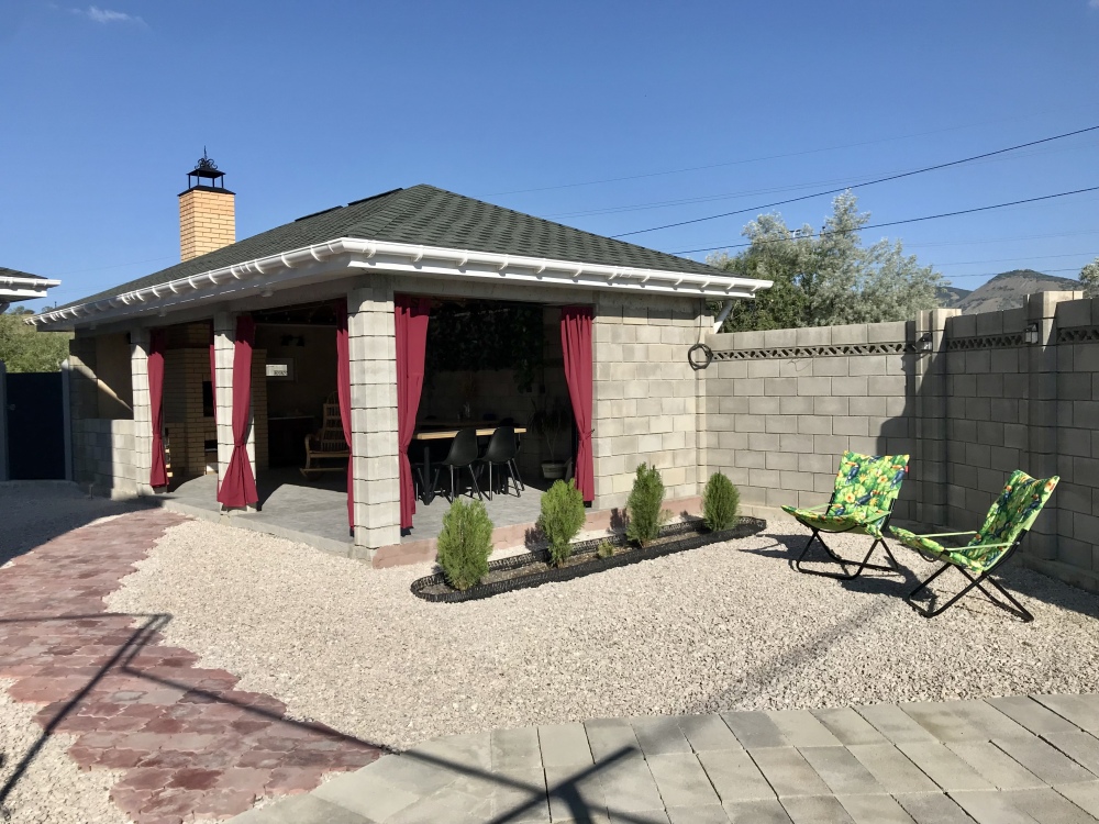 Приглашаем на отдых в новом доме у моря, в тихом месте без городской суеты. До моря по ровной местности свободной ходьбой 3−4 минуты 150м. Большой песчано-галечный пляж, чистая вода, красивый вид на Карадаг.