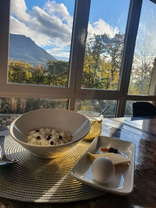 - Размещение в просторном домике с видом на горы
