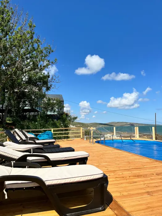 Сейчас мы подготавливаем для наших гостей уютное летнее кафе с красивым белым шатром и столиками на самом берегу моря, где Вы сможете отведать блюда из свежей рыбы или насладиться кальяном. Территория площадью 1 гектар включает бассейн с подогревом, зоны для барбекю, мангальные и костровые места, кафе, кинотеатр под открытым небом и множество маршрутов для прогулок. Тёплый бассейн продлит лето, а зимой гостей согревают горячие чаны под открытым небом.