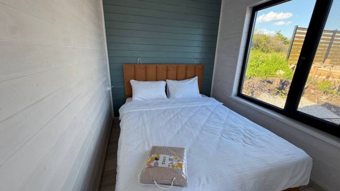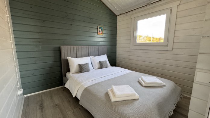 Коттедж выполнен из натурального дерева в сочных ягодных оттенках, внутри расположена отдельная спальня, кухня-гостиная и душевая комната, а с собственной террасы открывается потрясающий вид на море.