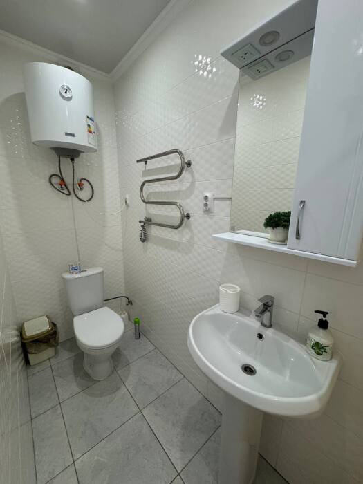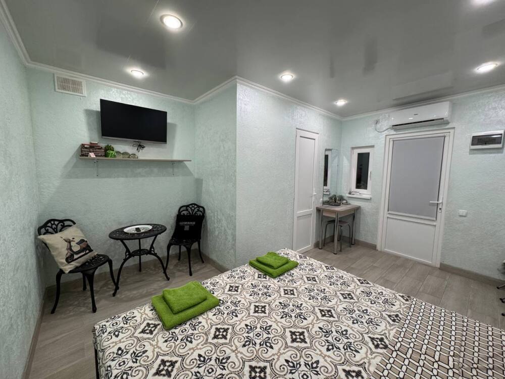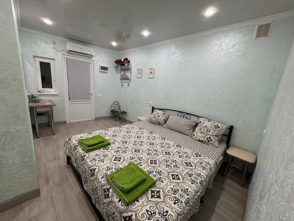 Дом с двумя комнатами и кухней. В каждой комнате есть двуспальная кровать с ортопедическим матрасом, телевизор, кондиционер, wi-fi. Также в каждой комнате душ и туалет. На кухне плита, холодильник, микроволновая печь, стиральная машина, неограниченное количество посуды.