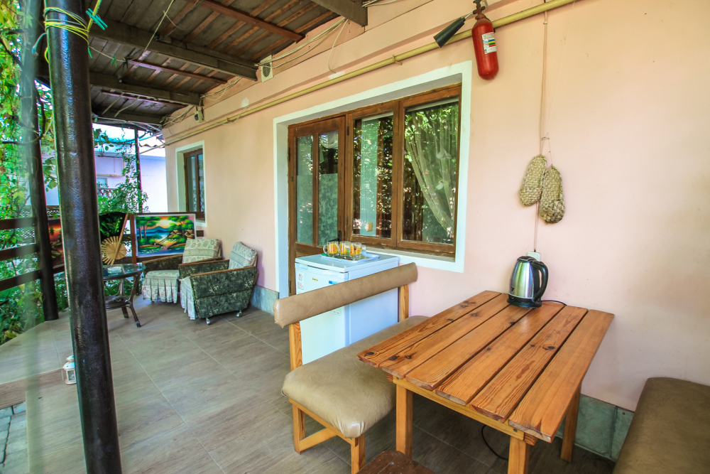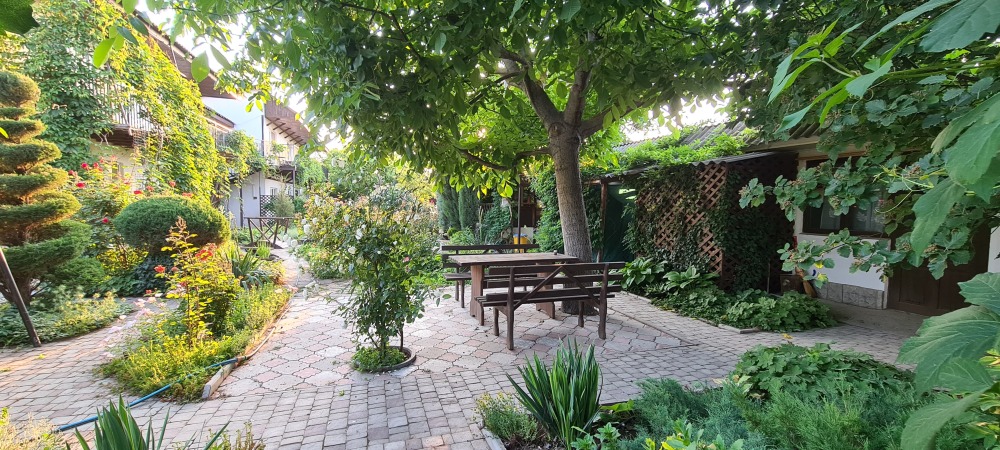 Гостевой дом находится на первой линии в 200 метрах от моря и удален от центра на 1 км, здесь мало шума, нет суеты, обеспечен спокойный отдых.