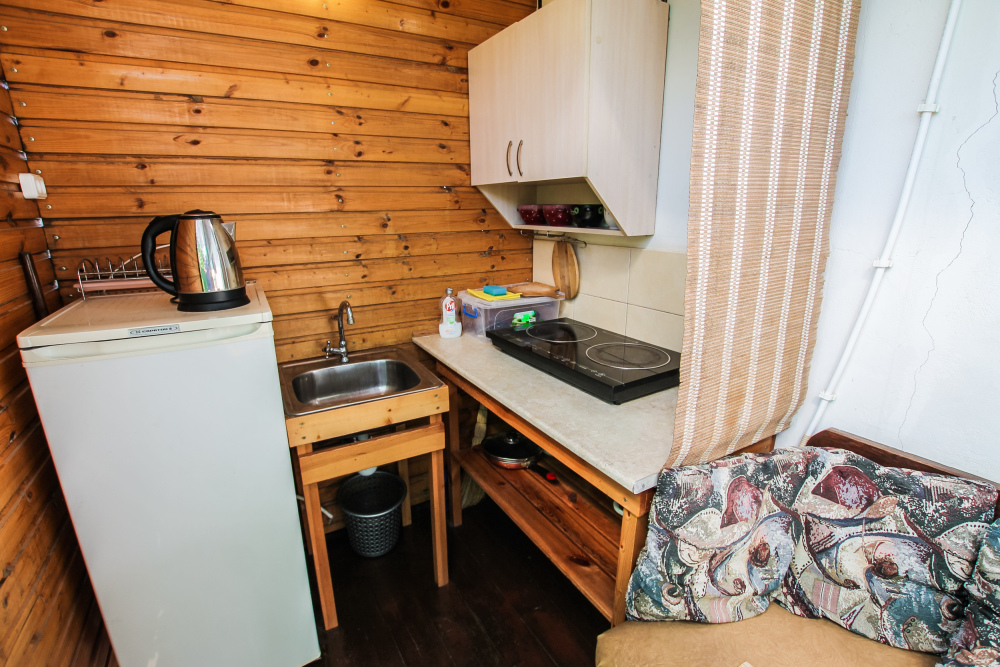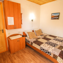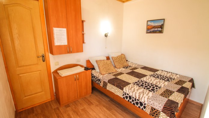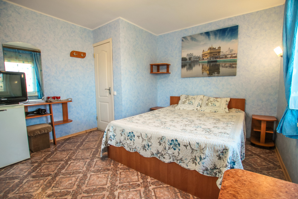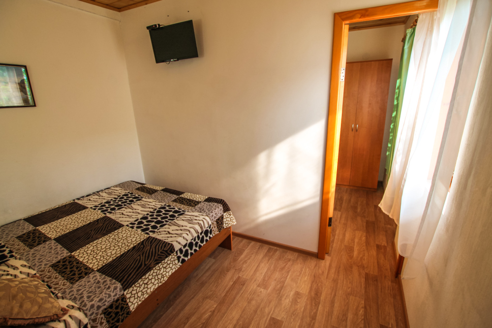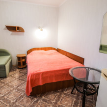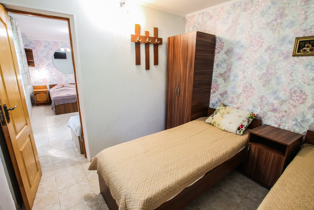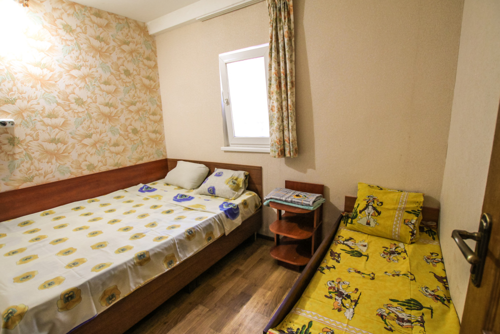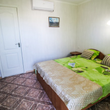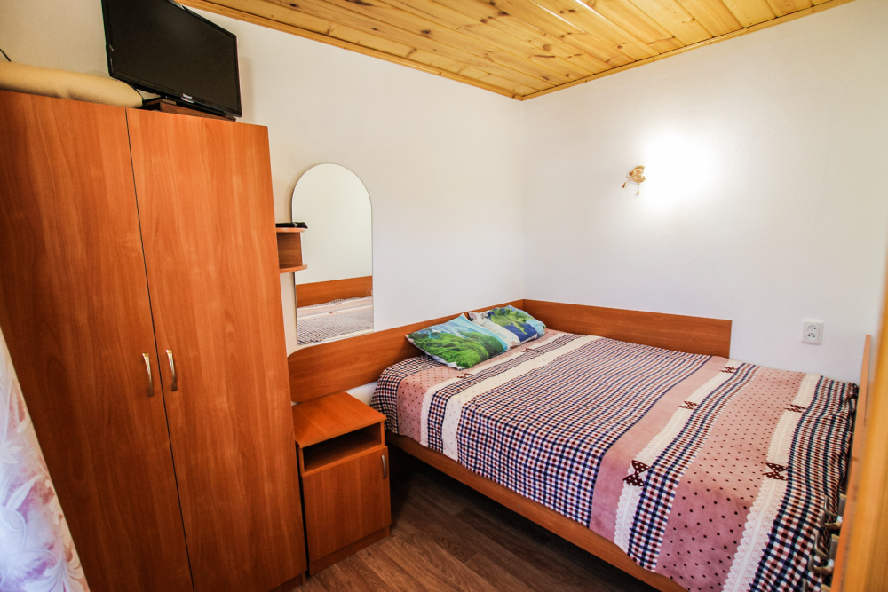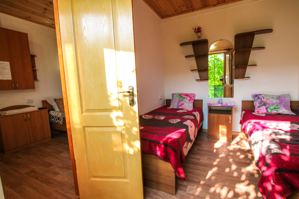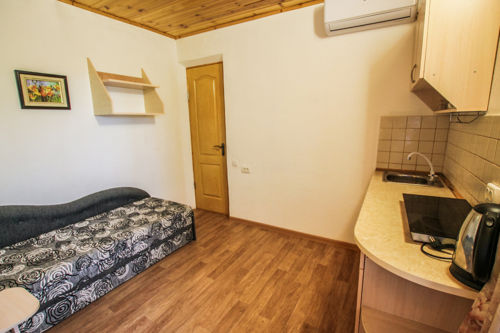 Уютный двухместный номер для комфортного отдыха. Все самое необходимое есть в номере. Две односпальные кровати с ортопедическими матрасами. Кондиционер, телевизор, холодильник, фен. Чайник и чайная посуда. Общая кухня на территории.