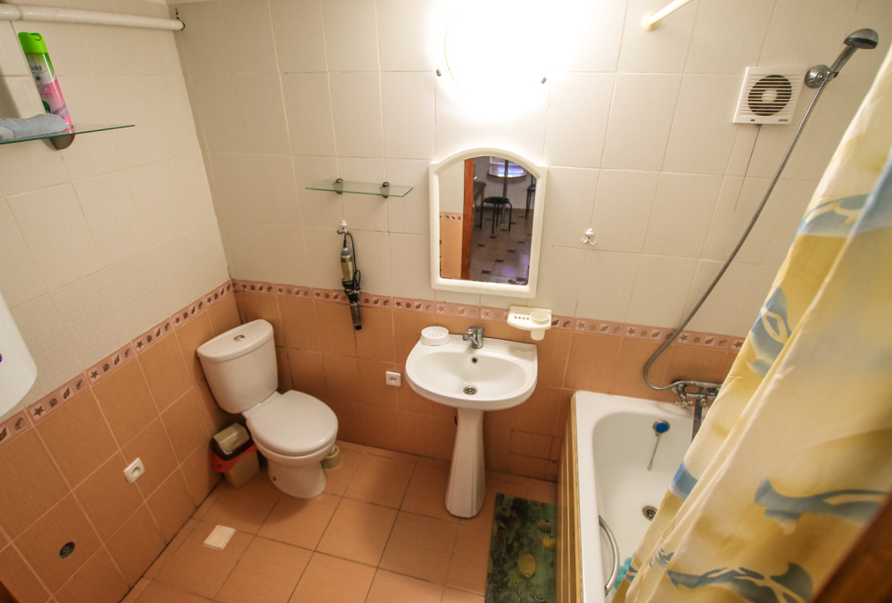 Целый этаж для большой компании. Отдельный вход, свой уютный дворик и кухня с газовой плитой. Две изолированные комнаты. Санузел с душем. В стандартную комплектацию номера входит: кондиционер, телевизор, холодильник, кровати, диван, тумбочки, шкаф, пуфики, журнальный и туалетный столик.