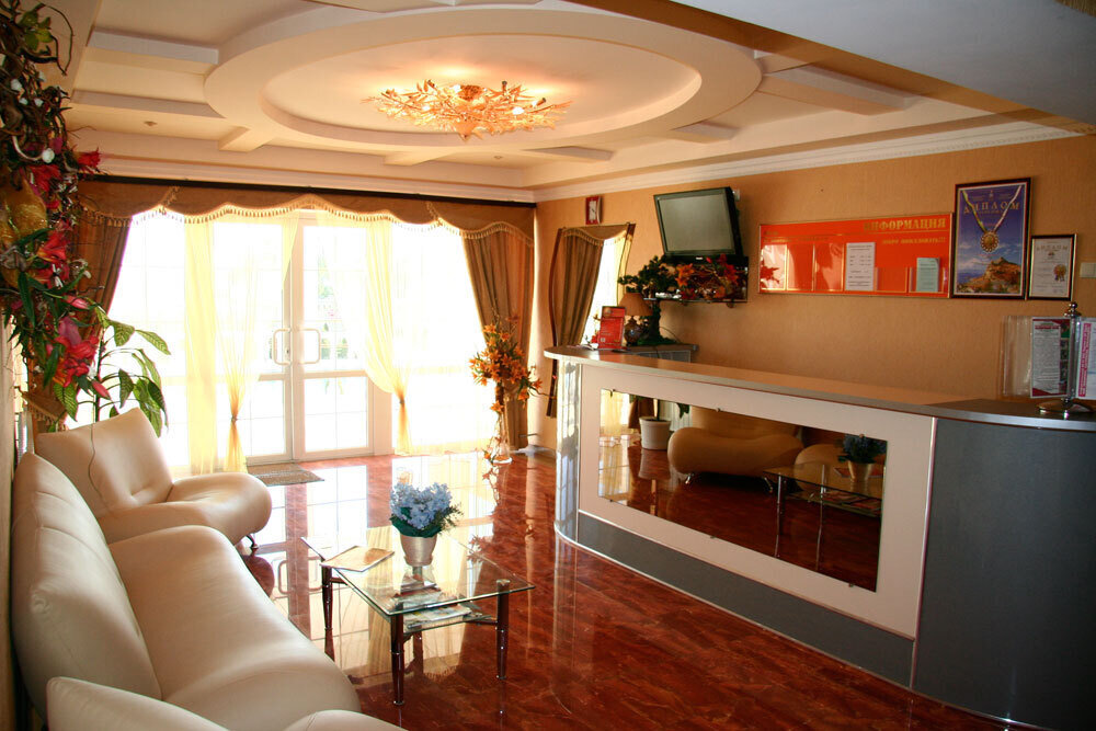 Отель расположен на большой территории, утопающей в цветах, елях, фруктовых деревьях, состоит из 2-х корпусов. Первый корпус – 3-этажное здание на 40 номеров. Из них 38 - однокомнатные номера (19 м.кв.) категории стандарт, 2 - номера первой категории стандарт двухкомнатный семейный (51 м.кв). Второй корпус - 2-этажное здание, в котором расположено 2 номера на втором этаже. На первом этаже находится спа-комплекс.