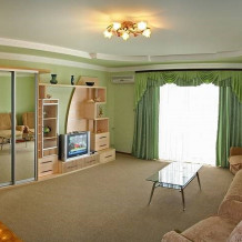 Просторный двухкомнатный номер категории «стандарт» предназначен для любителей идеально комфортного отдыха. В номере есть два балкона, гидромассажная душевая кабина, в каждой комнате - телевизор и кондиционер. В номере может разместиться от 2 до 6 человек, что прекрасно подходит для отпуска всей семьей.