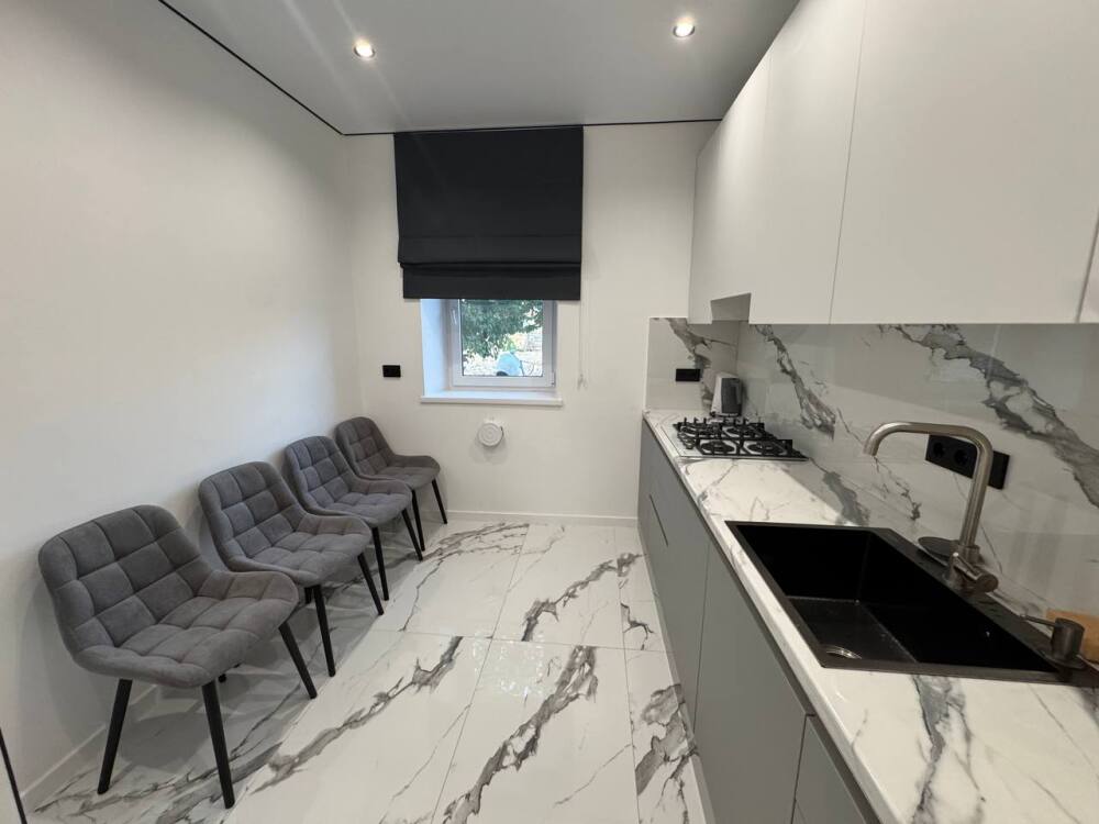 Дом одноэтажный, с 2 комнатами и дорогим современным ремонтом. Спальная комната оборудована удобной двуспальной кроватью и вместительным шкафом для хранения вещей. Гостиная оснащена большим диваном и телевизором с кабельным тв. Кухня просторная, с современной бытовой техникой, включая холодильник и плиту. Санузел совмещённый, оформлен в том же стиле, что и остальная часть дома, с душевой кабиной и стиральной машиной.