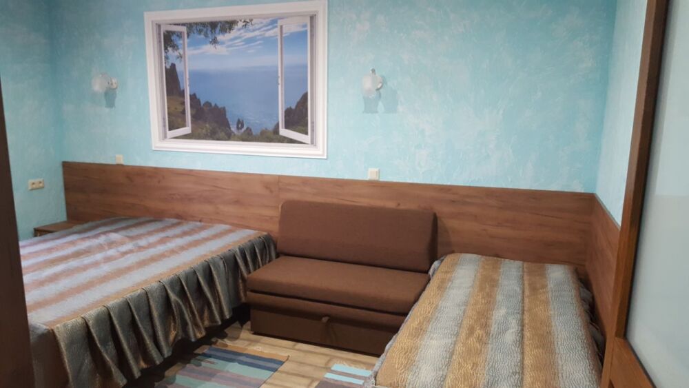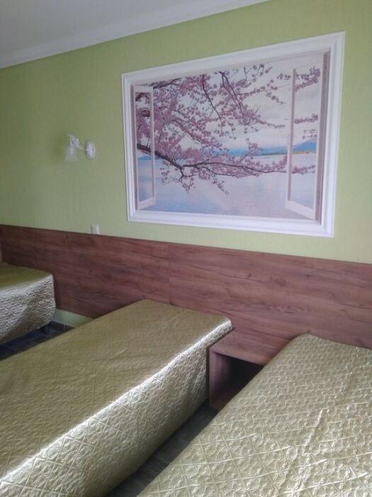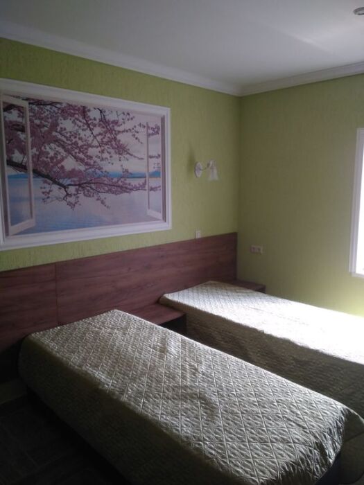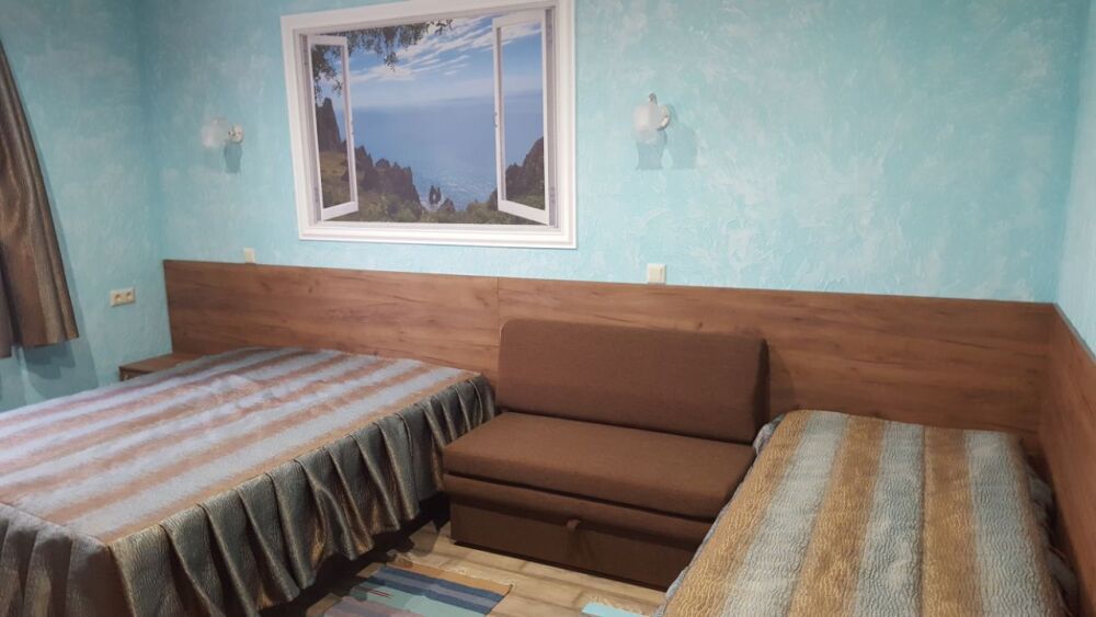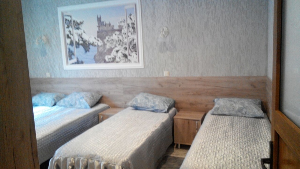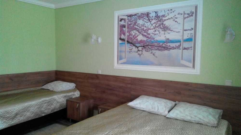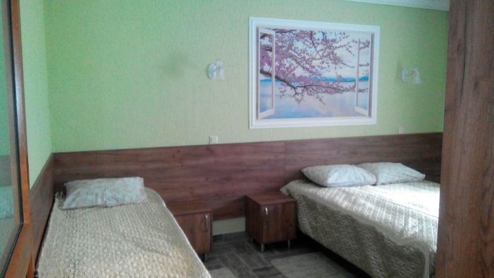 Для размещения предлагают 4 номера «Зима», «Весна», «Лето», «Осень». Номера рассчитаны для 3-4 человек + дополнительное место - детская кроватка. Каждый оснащён кухней и санузлом. Кухня укомплектована полностью: электроплита, холодильник, свч, мультиварка, посуда. В санузле стиральная машина, умывальник, унитаз, душевая панель, бойлер. Горячая и холодная вода круглосуточно. При каждом номере свой дворик с мангалом и зоной отдыха под навесом. У всех номеров свой отдельный вход. Есть возможность объединения 2 номеров и двориков. Предоставляется детская кровать и стульчик для кормления. Телевизор и кондиционер в комнате. Белье постельное и полотенца (3 шт. на каждого) предоставляются и отдельно пляжные полотенца. Отопление электрическое (конвекторы).